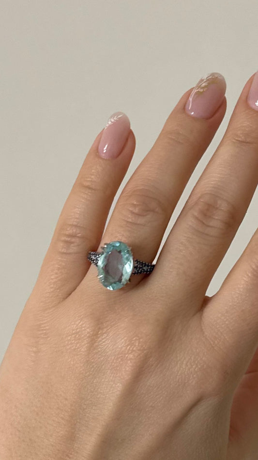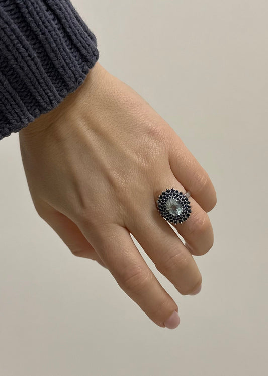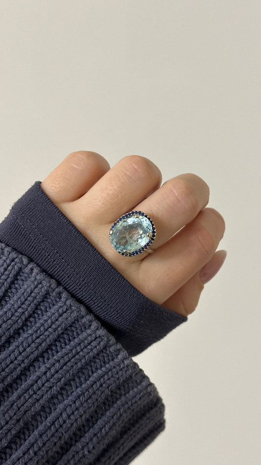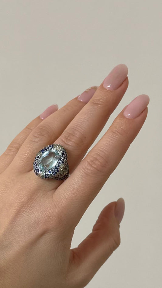 Silver Ring with Aquamarine and Multicoloured Sapphires