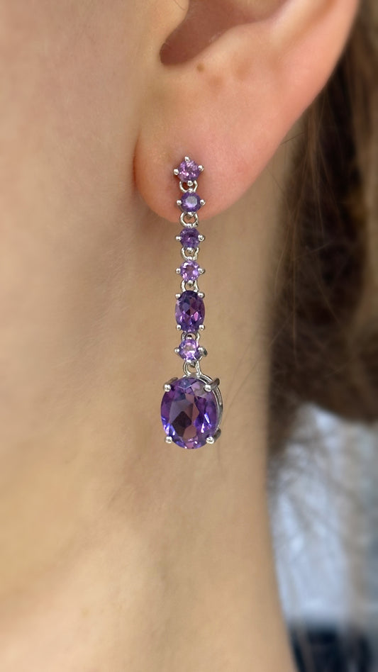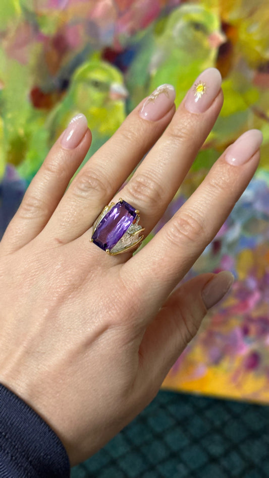 Silver Flower Ring with an Amethyst and Tsavorite Garnets