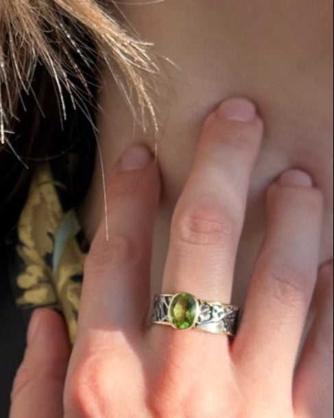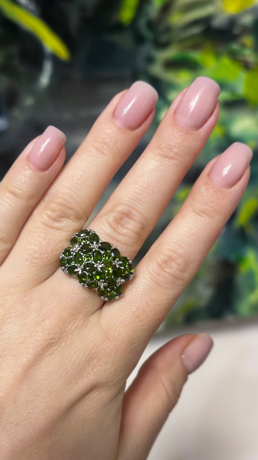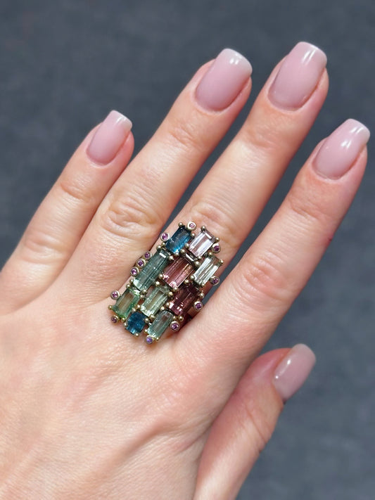 Silver Ring with Tourmalines and Rhodolite Garnets