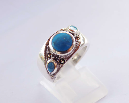 Silver Ring with Citrines, Blue Topazes and Kyanites