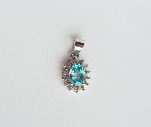 Silver Pendant with Blue Topaz and Zircons