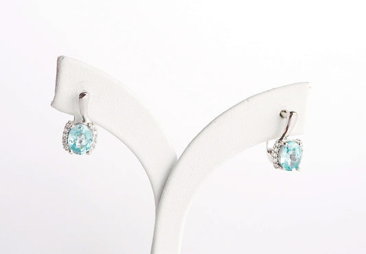 Silver Earrings with Swiss Blue Topazes and Zircons