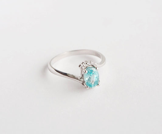 Silver Ring with Blue Topaz and Zircons
