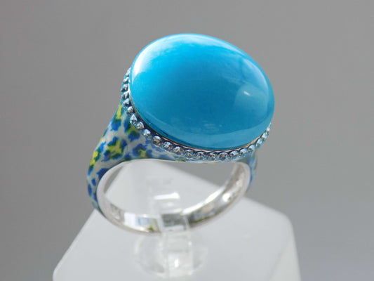 Silver Ring with Enamel and SWAROVSKI Crystals