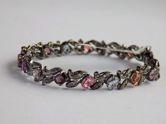 Silver Bracelet with Multicolored Spinels and Blue Sapphires