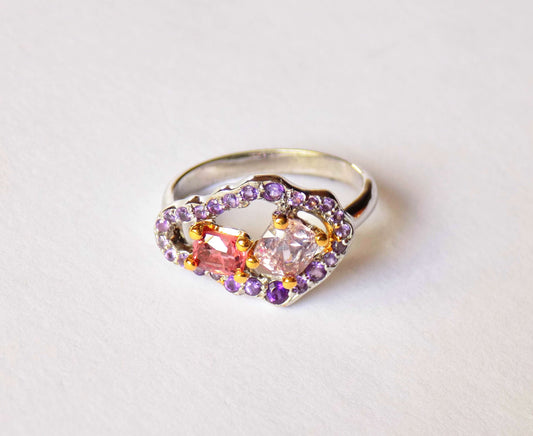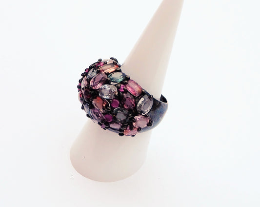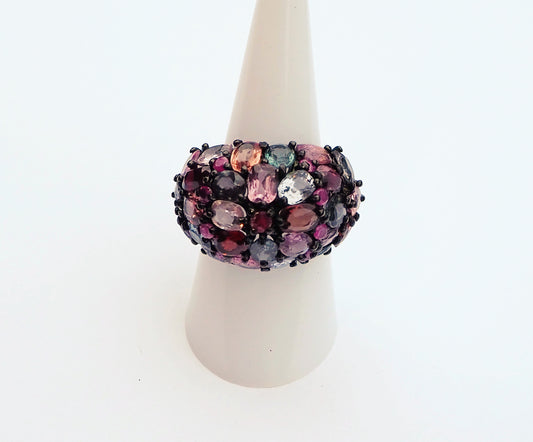 Silver Ring with Multicolored Spinel and Amethysts