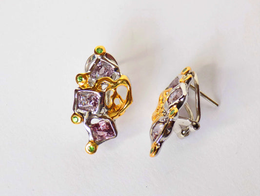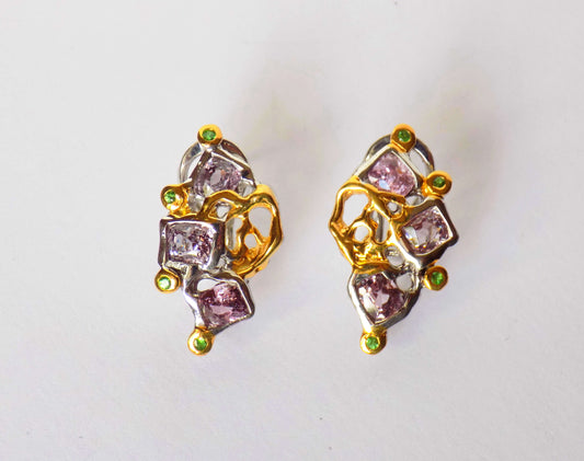 Silver Earrings with Multicolored Spinel and Tsavorite Garnets