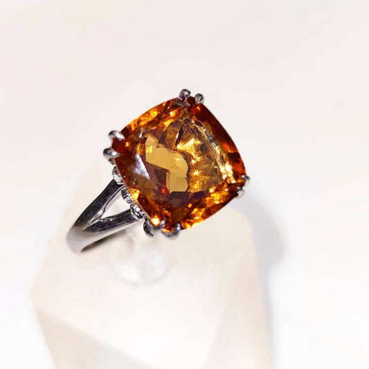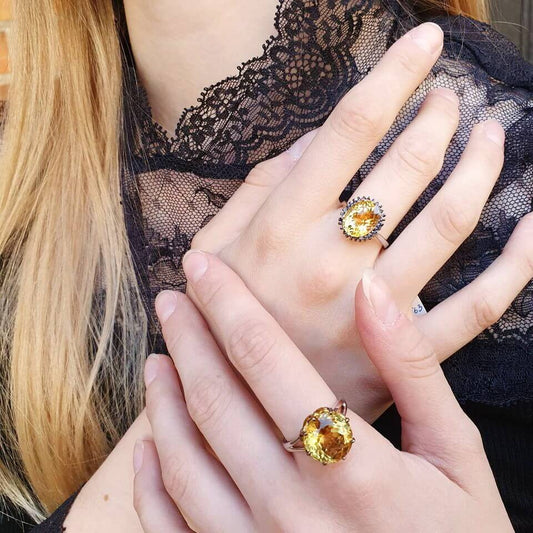 Silver Ring with Smoky Quartz and Yellow Sapphires