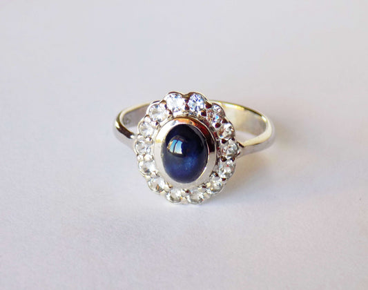 Silver Ring with London Topaz, Blue Sapphires and Leuco Sapphires