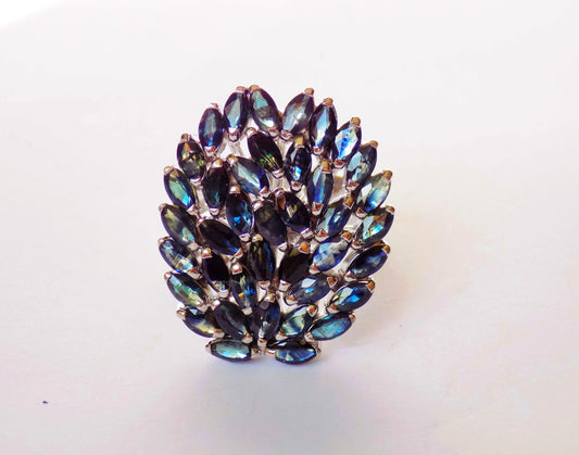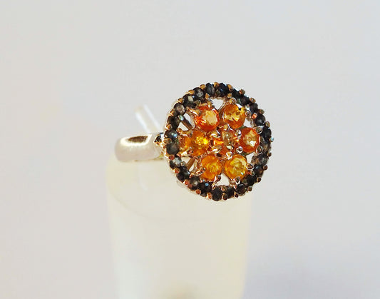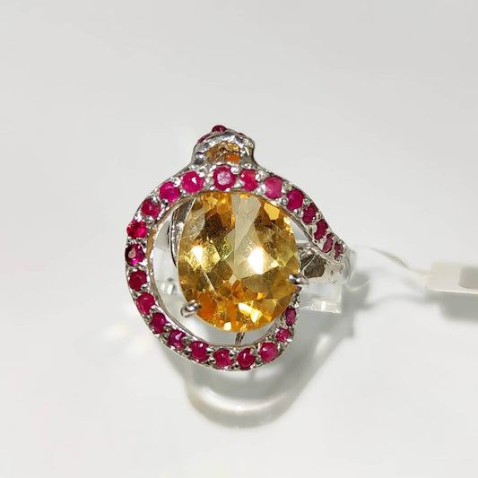 Silver Ring with Citrines, Blue Topazes and Garnets