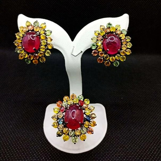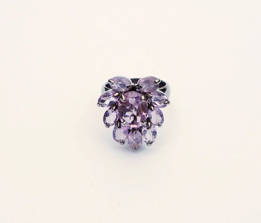 Silver Ring with Amethysts, Blue Topazes, Citrines, Garnets, Emeralds, Ruby and Sapphires