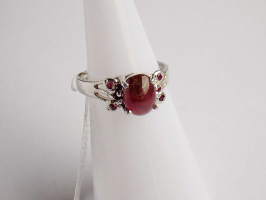 Silver Ring with Rubies and Zircons