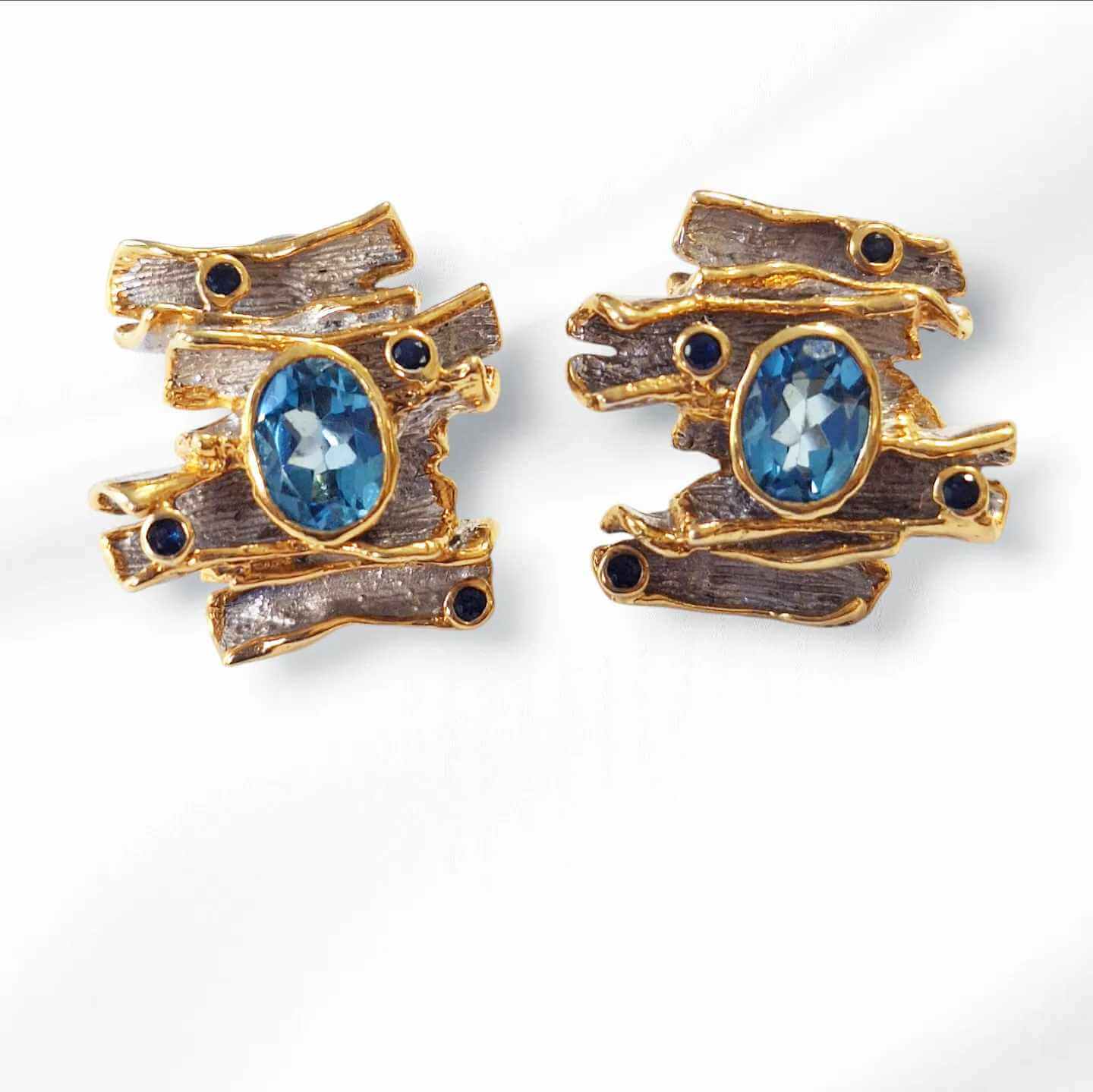 Sudraba auskari ar akvamarīniem un ziliem safīriem