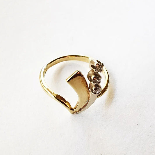 14 K dzeltenā un baltā zelta gredzens ar dimantā grieztiem cirkoniem