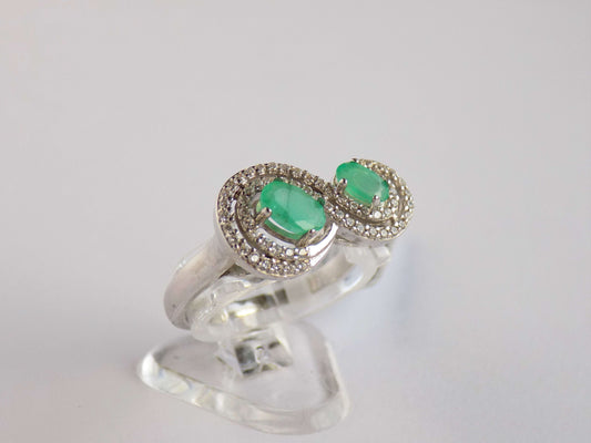 Sudraba gredzens ar smaragdiem un ziliem safīriem