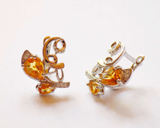 Sudraba auskari ar citronu citrīnu, smaragdu un zaļo turmalīnu