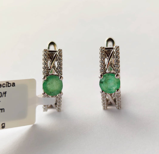 Sudraba auskari ar smaragdu un cirkoniem