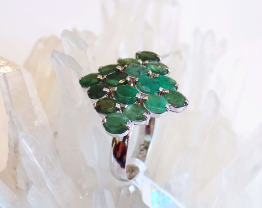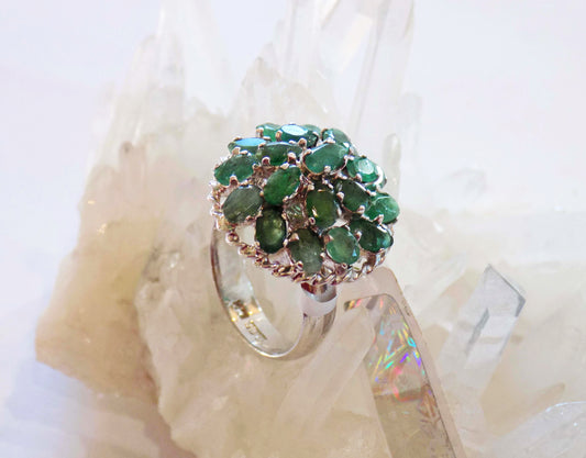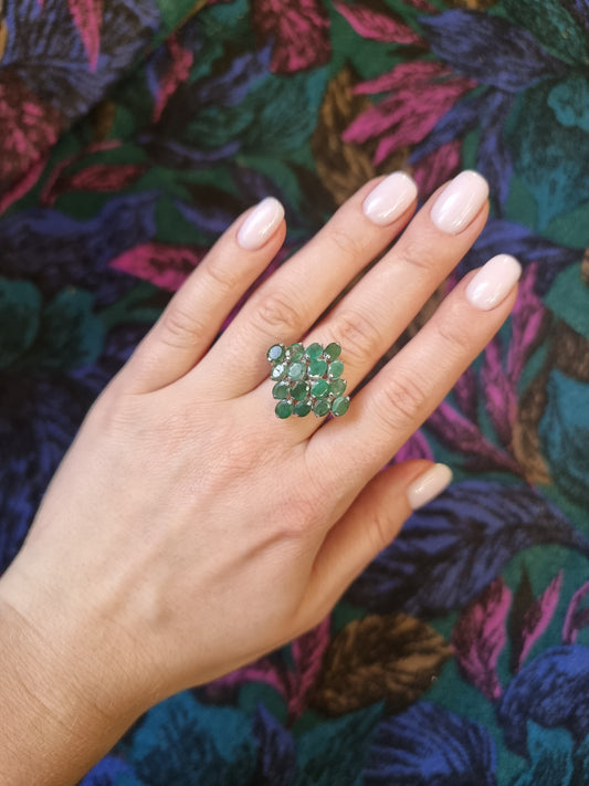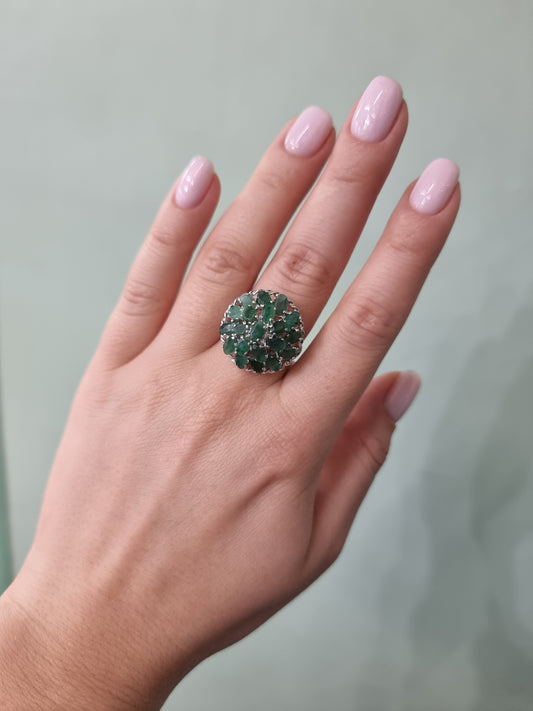 Sudraba gredzens ar smaragdiem un dzelteniem safīriem