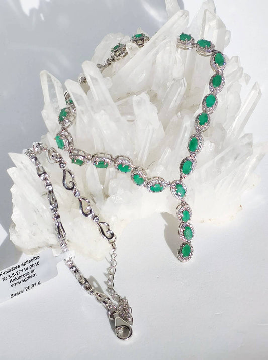 Sudraba kaklarota ar smaragdu un cirkoniem