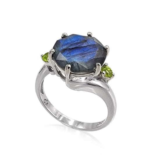 Sudraba kaklarota ar labradoru un peridotiem