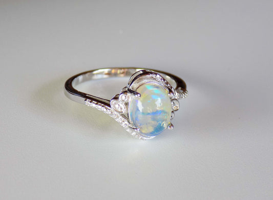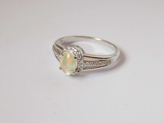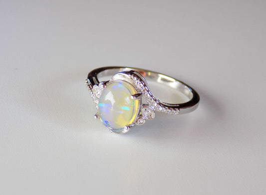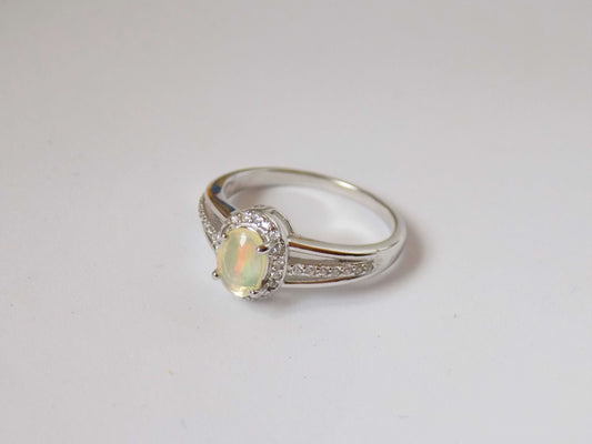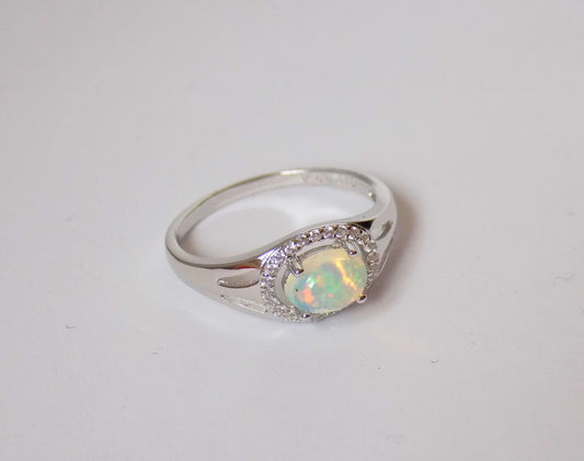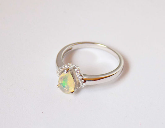 Sudraba gredzens ar Etiopijas opālu un cirkoniem