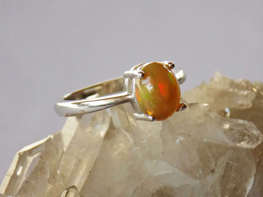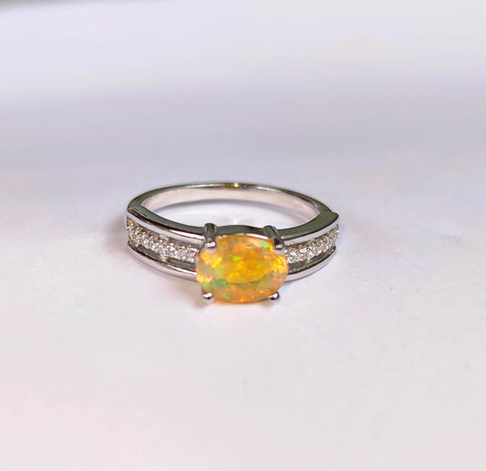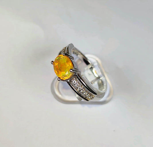 Sudraba gredzens ar meksikāņu opālu un cirkoniem