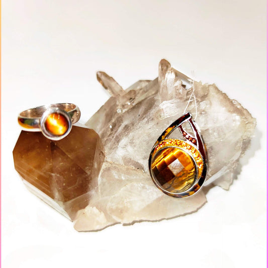 Sudraba kulons ar tīģera aci un SWAROVSKI kristāliem