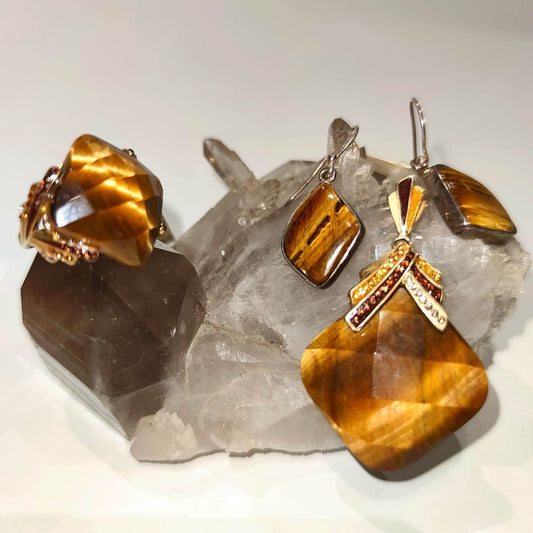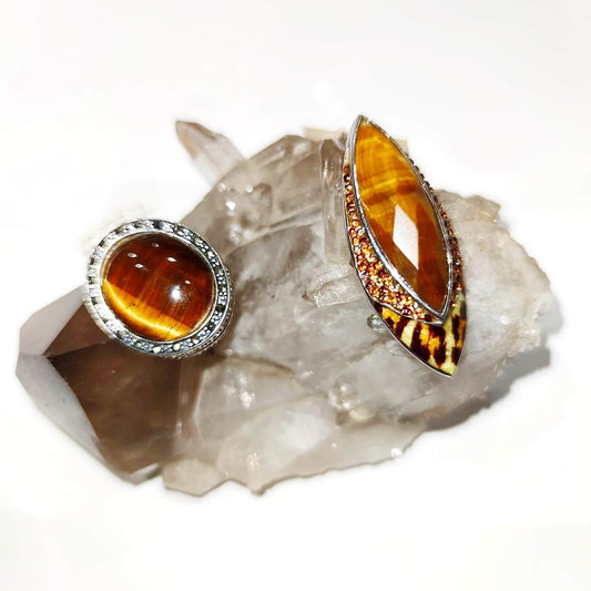 Sudraba gredzens ar tīģera aci un SWAROVSKI kristāliem