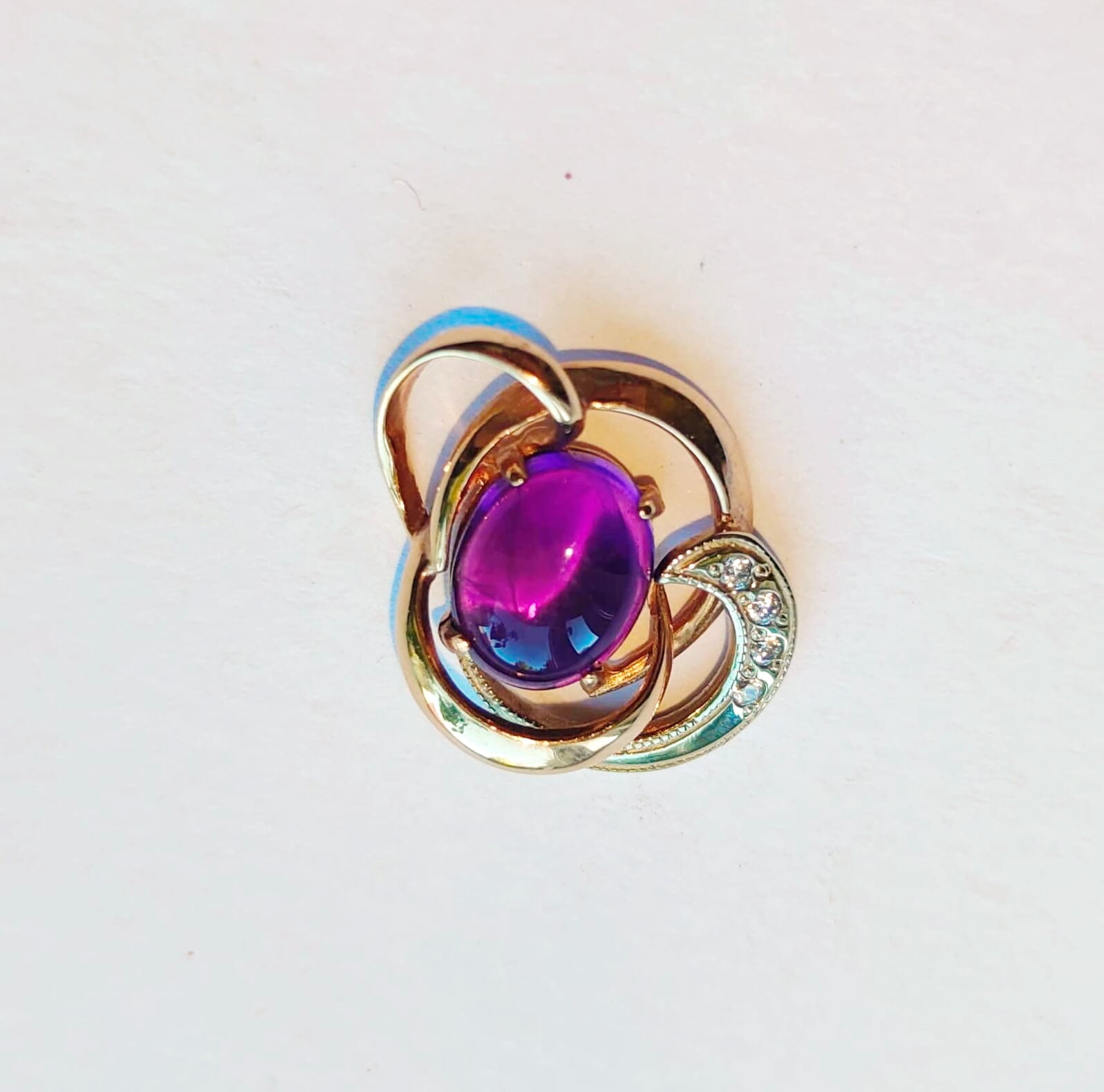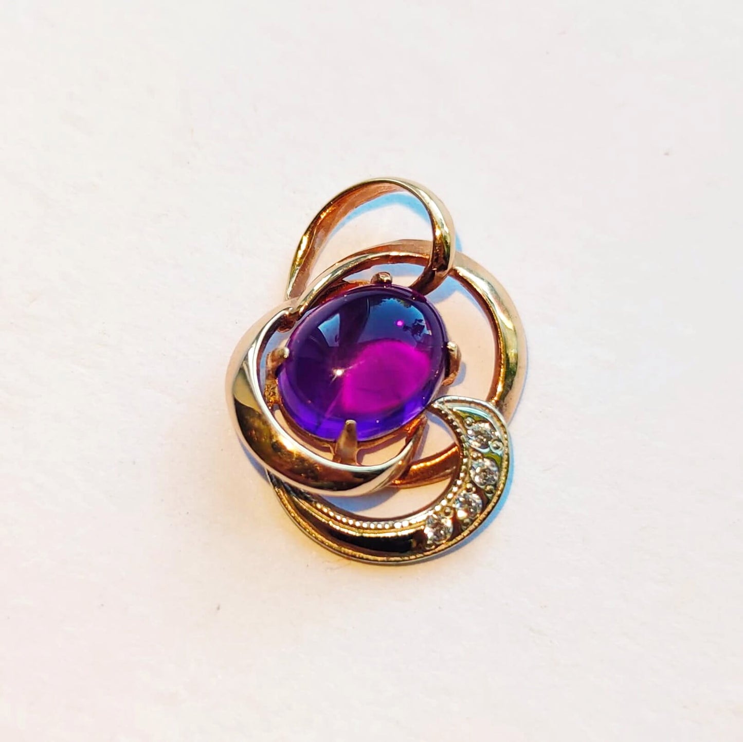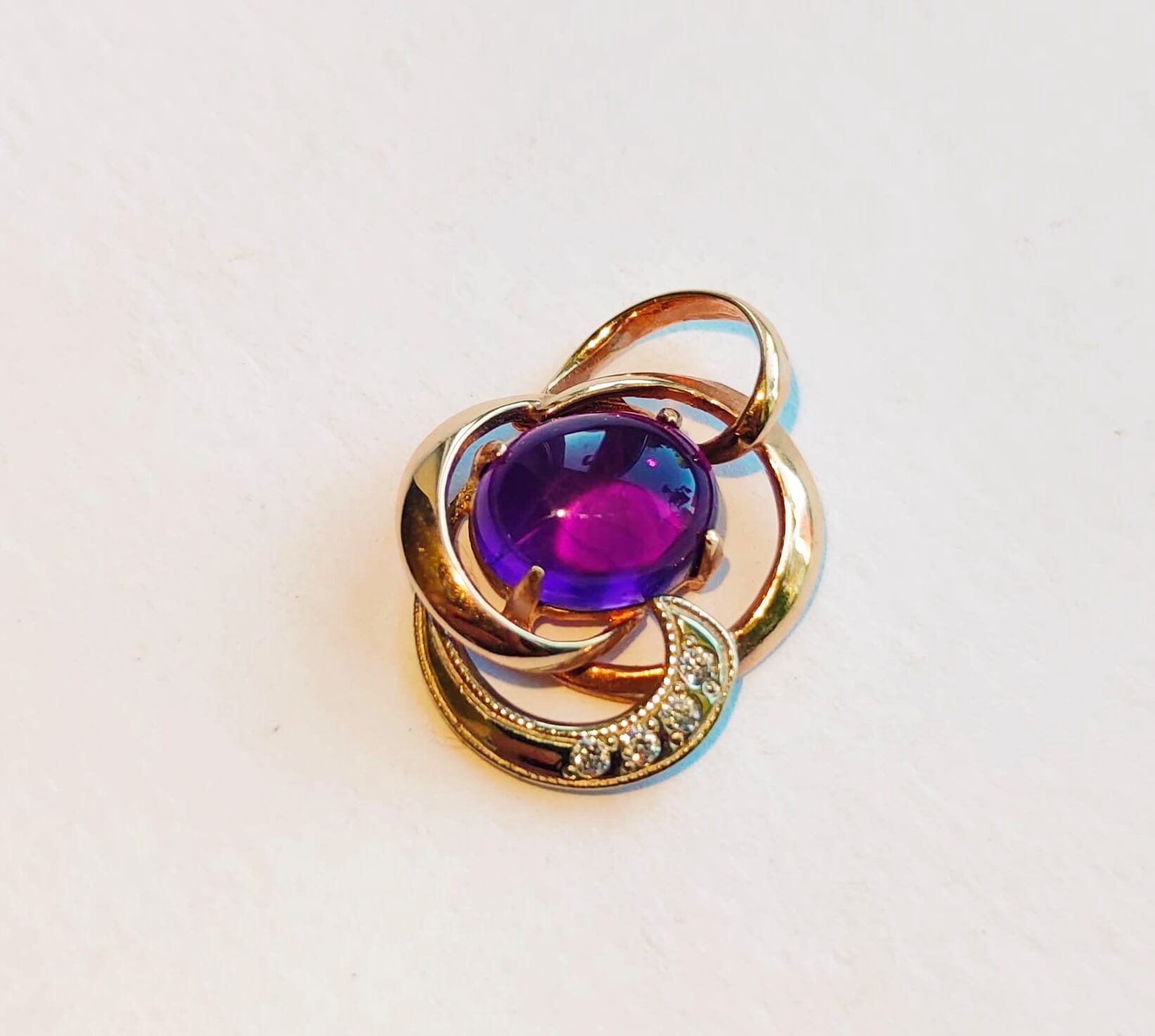 14K sarkanā un baltā zelta kulons ar ametistu un cirkoniem