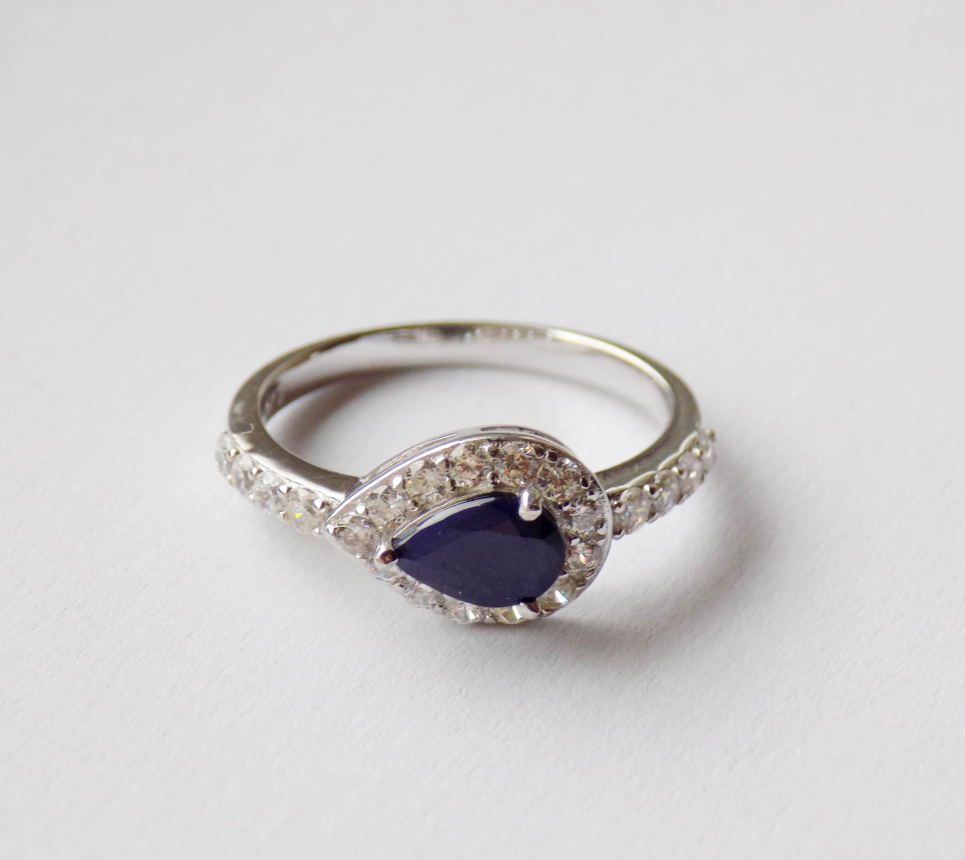 Sudraba gredzens ar zilu safīru un cirkoniem