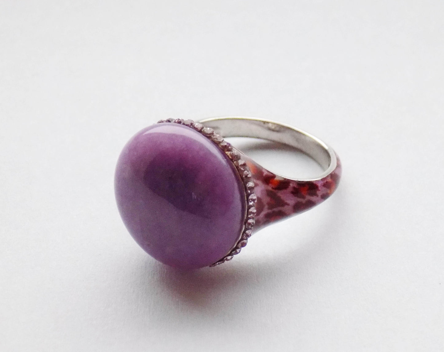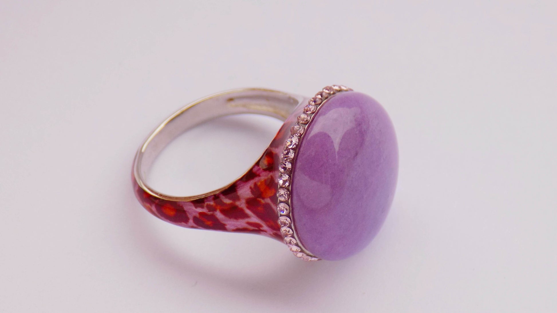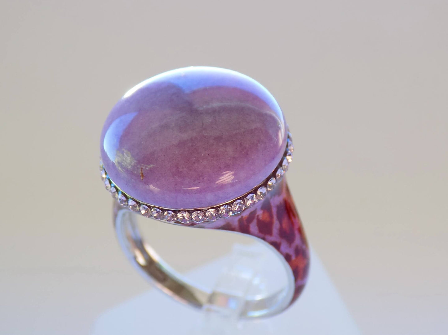Sudraba gredzens ar purpursarkanu nefrītu un SWAROVSKI kristāliem