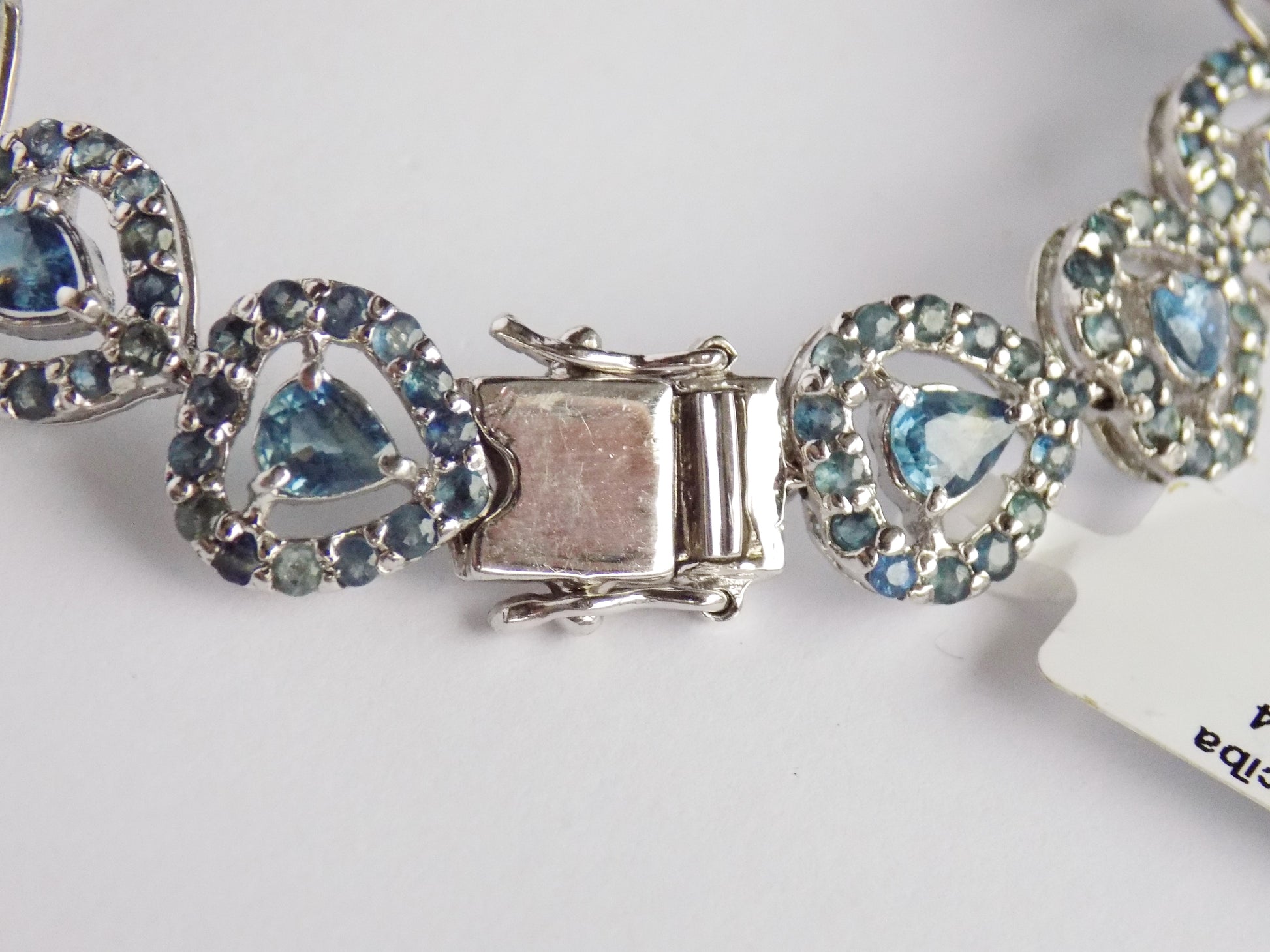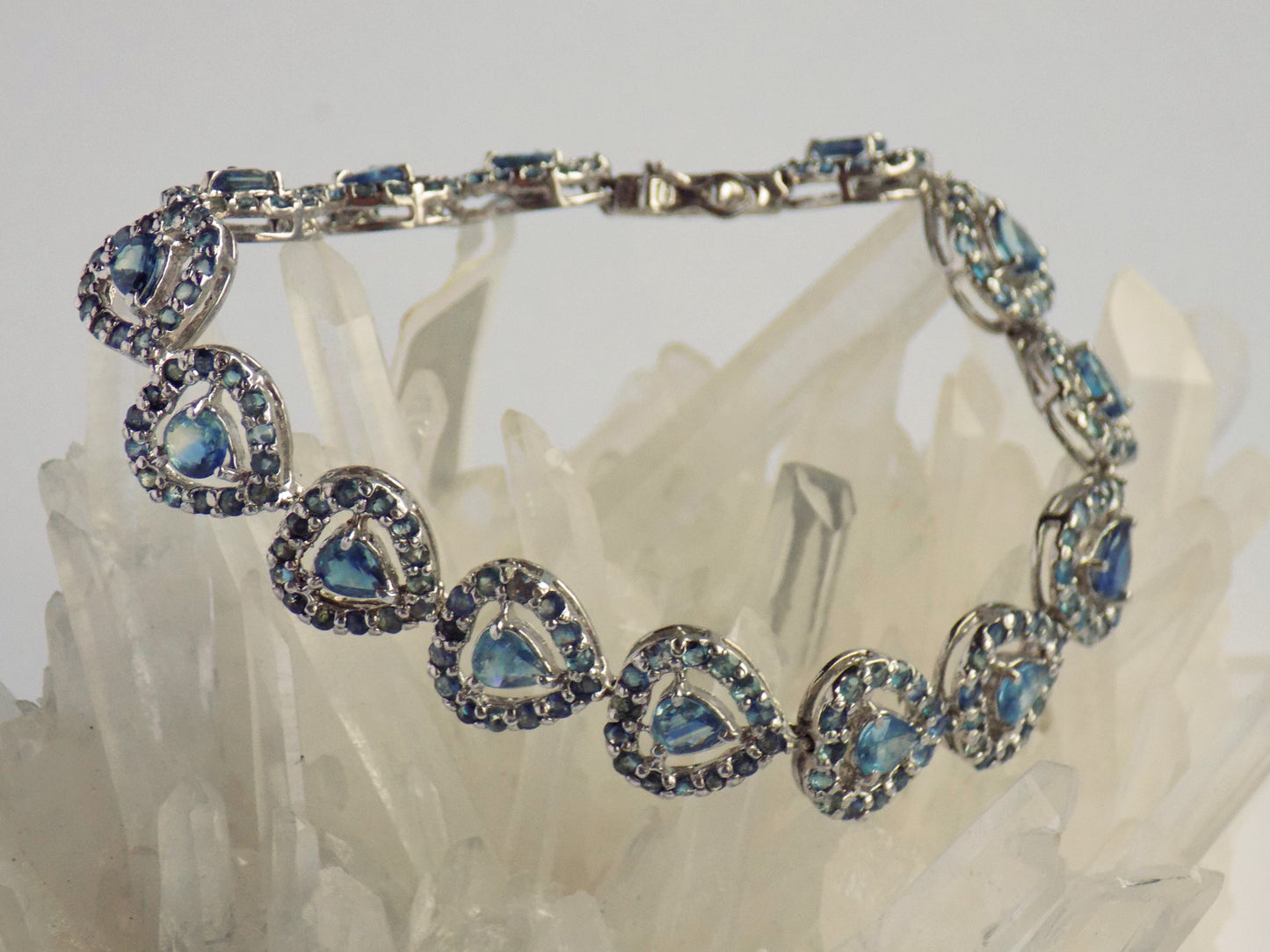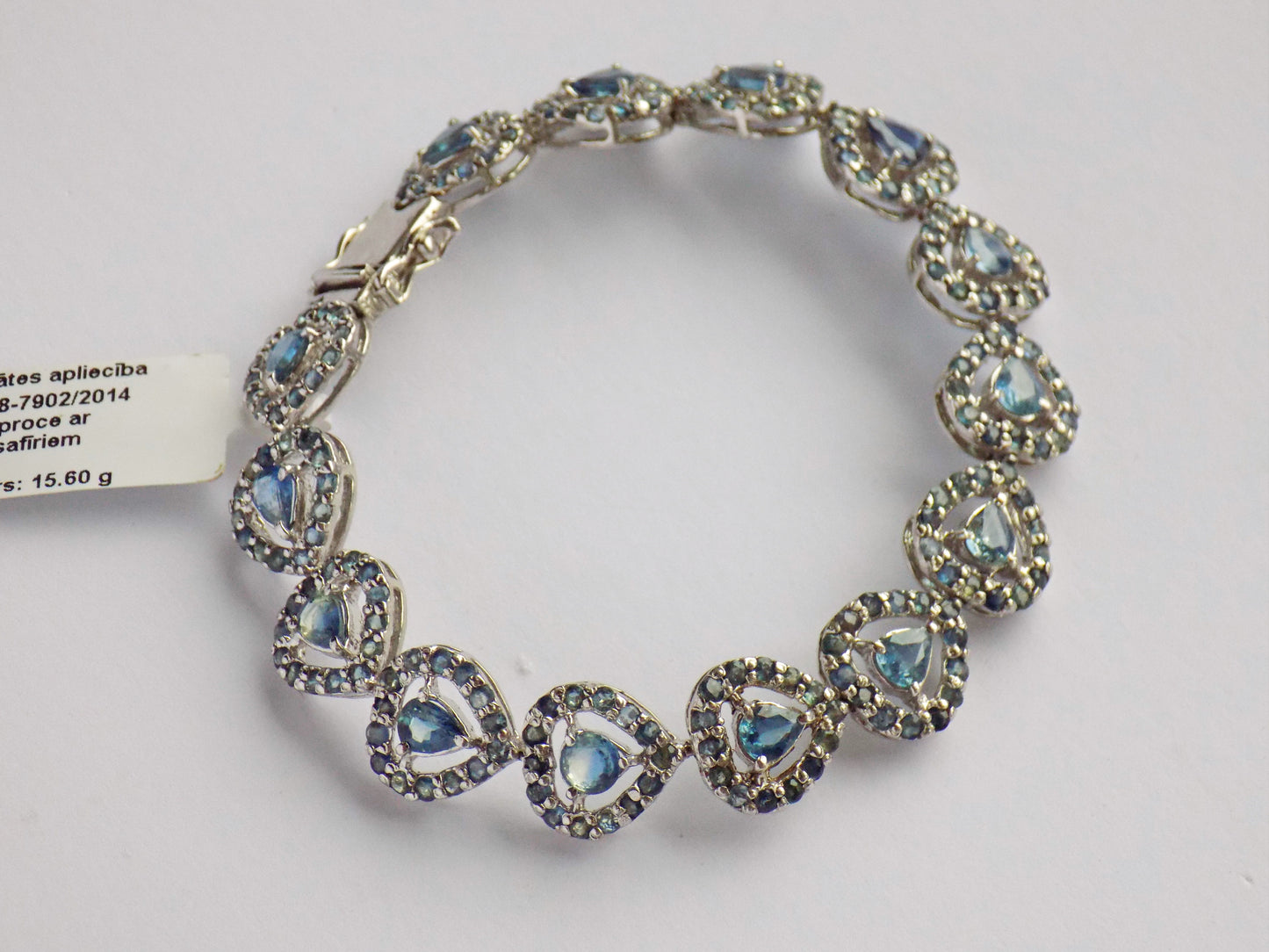 Dabīgie dārgakmeņi: Zilie safīri 11,42 ct - 13 gab. (0,4 cm x 0,5 cm), 1 gab. (0,4 cm x 0,4 cm), 196 gab. (0,15 cm x 0,15 cm).