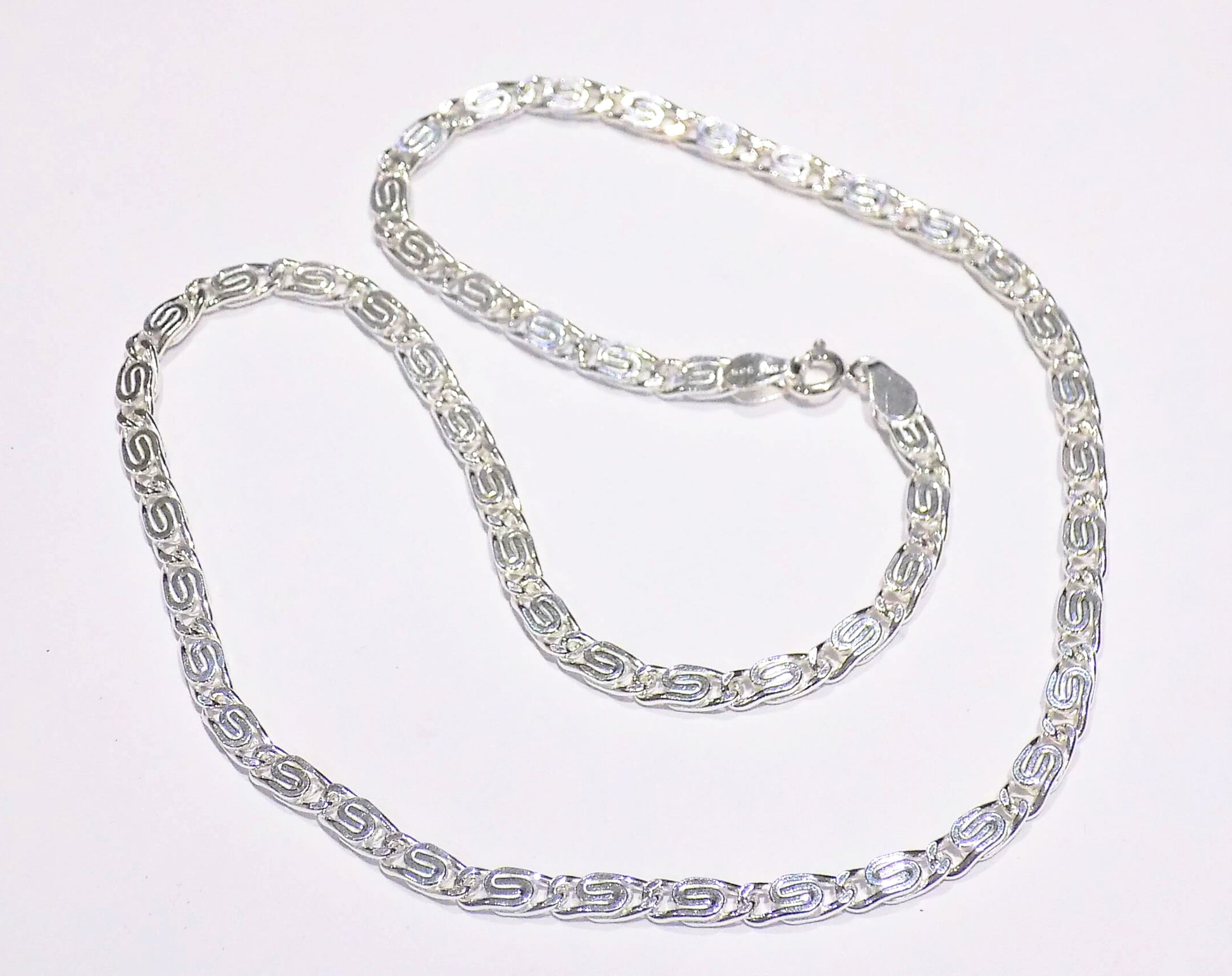 Modes sudraba ķēde, kas izskatās forša un aizraujoša gan vīriešiem, gan sievietēm. Lieliski piemērots valkāšanai ar apkakli, t-krekliem vai džemperiem. Lai iegūtu īpaši unikālu stilu, varat to kombinēt ar citām ķēdēm.