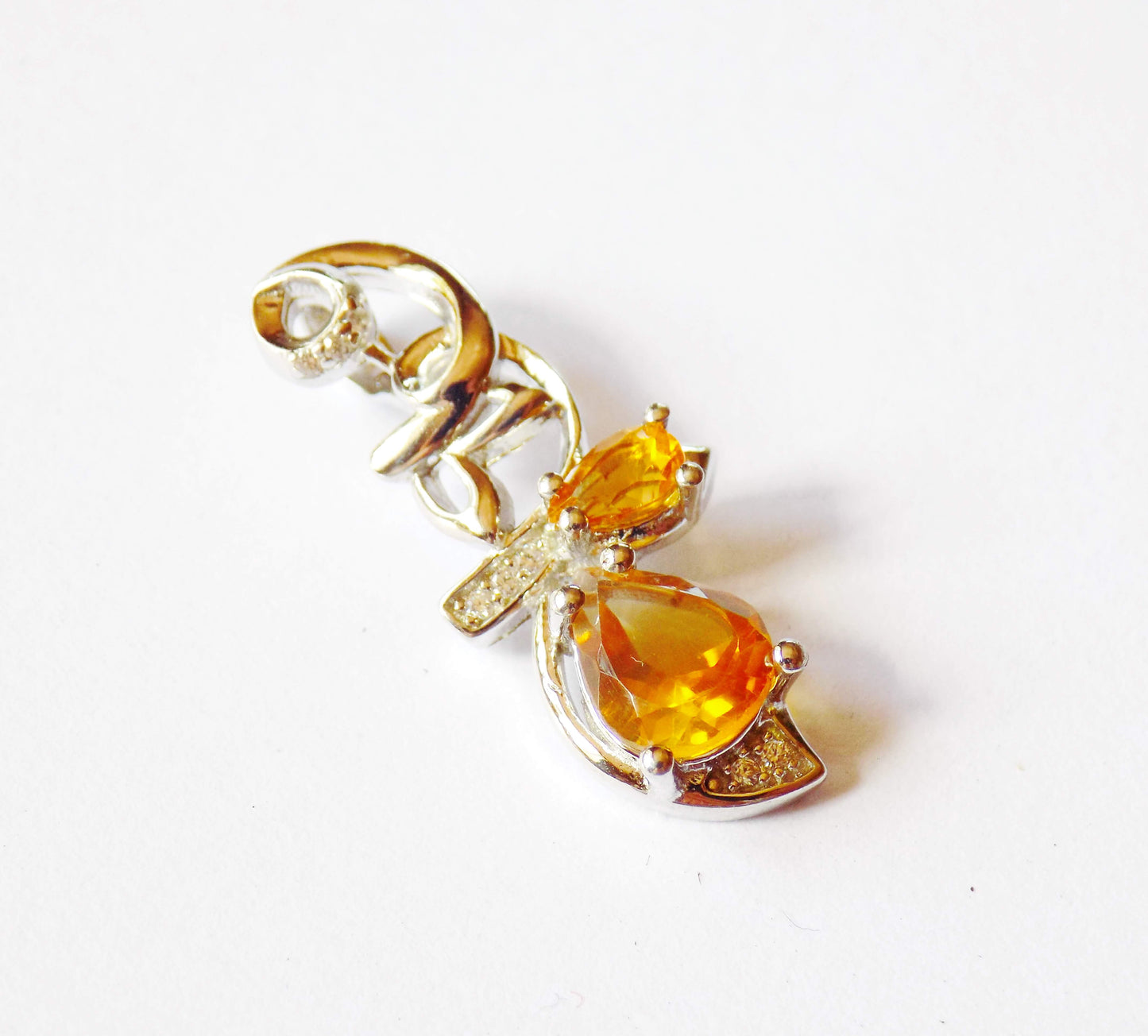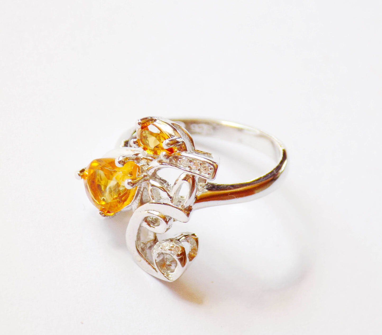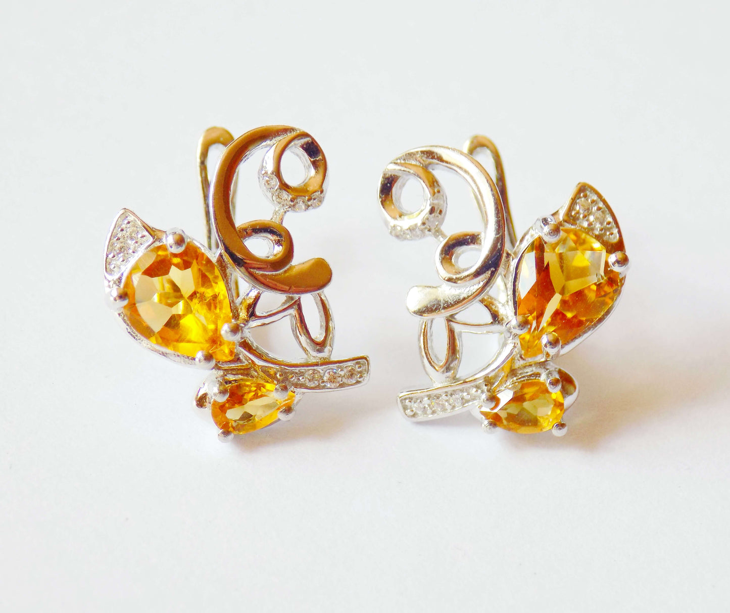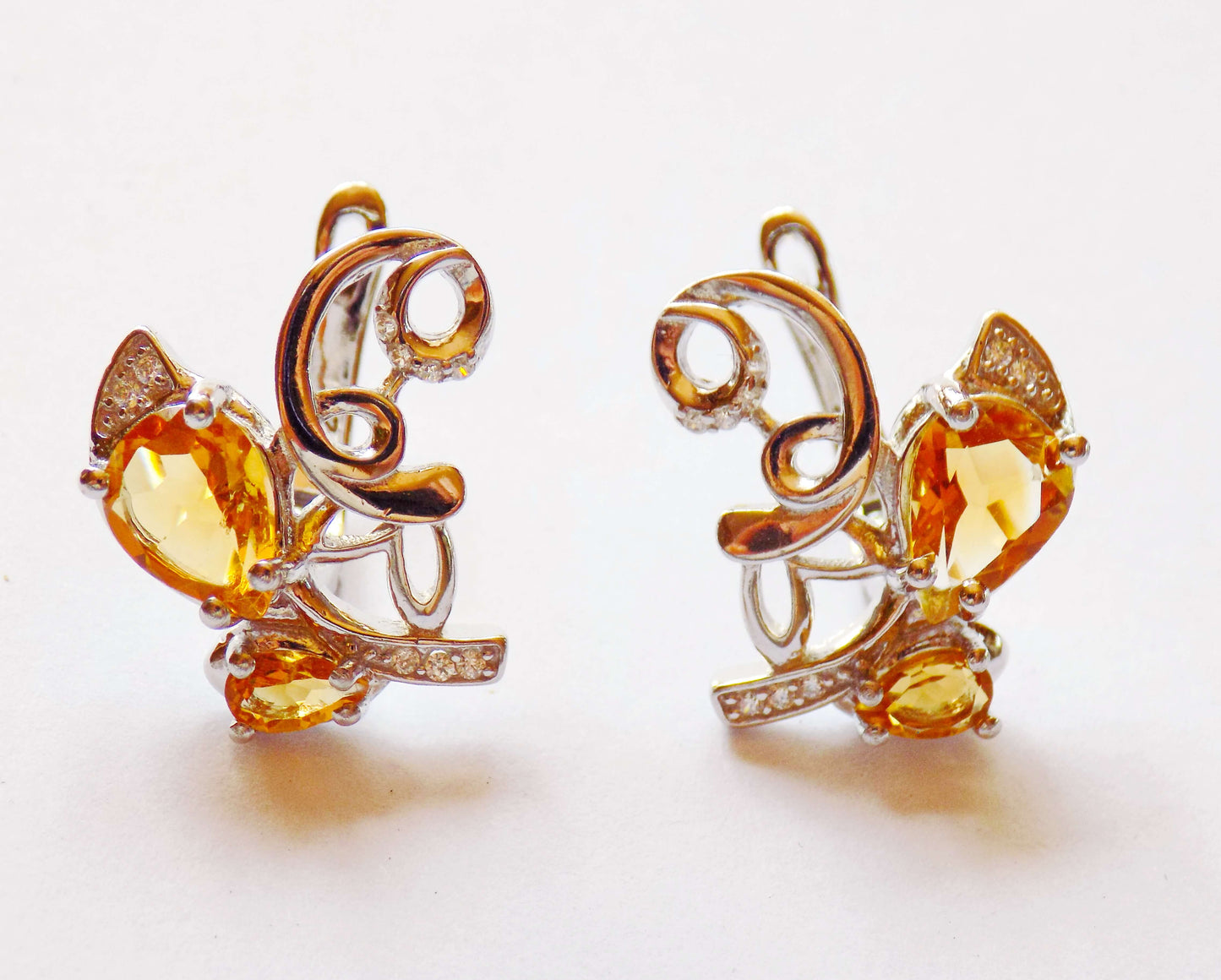 Dabīgie dārgakmeņi: Citrīni 2 gab. (0,6 cm x 0,8 cm), 2 gab. (0,3 cm x 0,5 cm) un cirkoni 18 gab. (0,1 cm x 0,1 cm).