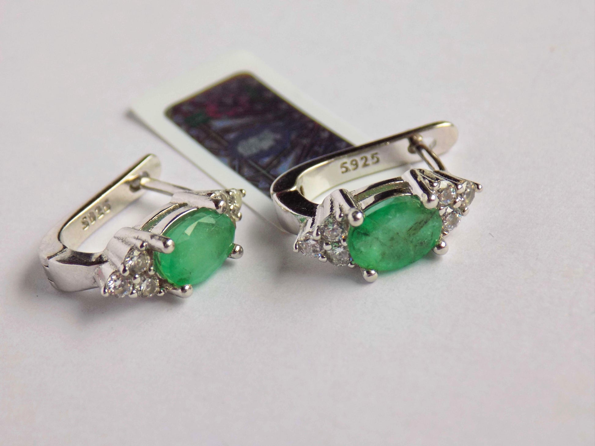 Dabīgie dārgakmeņi: Smaragdi 1,7 ct - 2 gab. (0,5 cm x 0,7 cm) un cirkoni 12 gab. (0,2 cm x 0,2 cm).