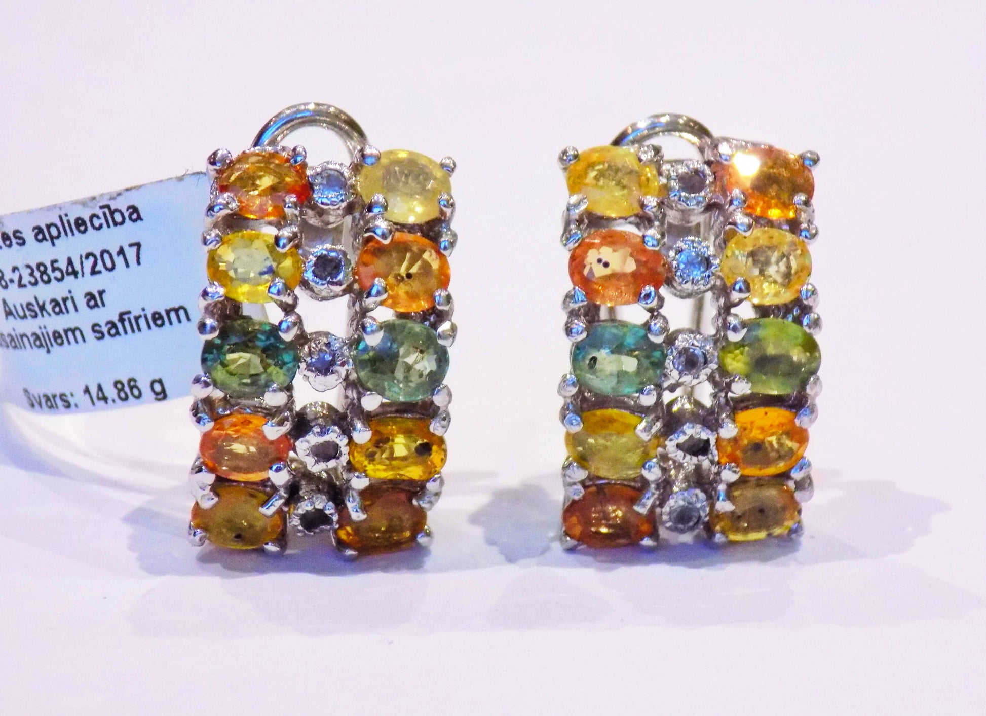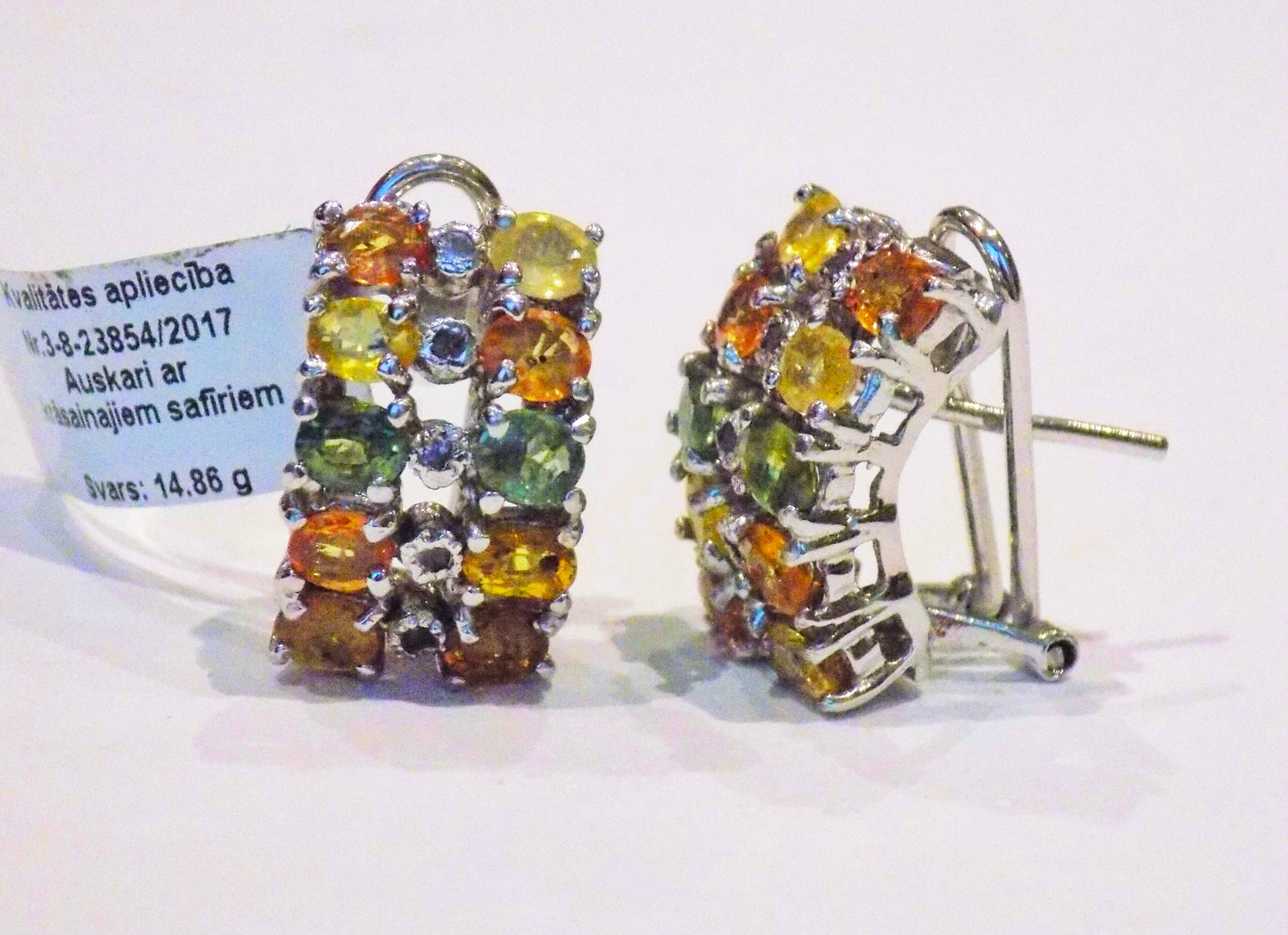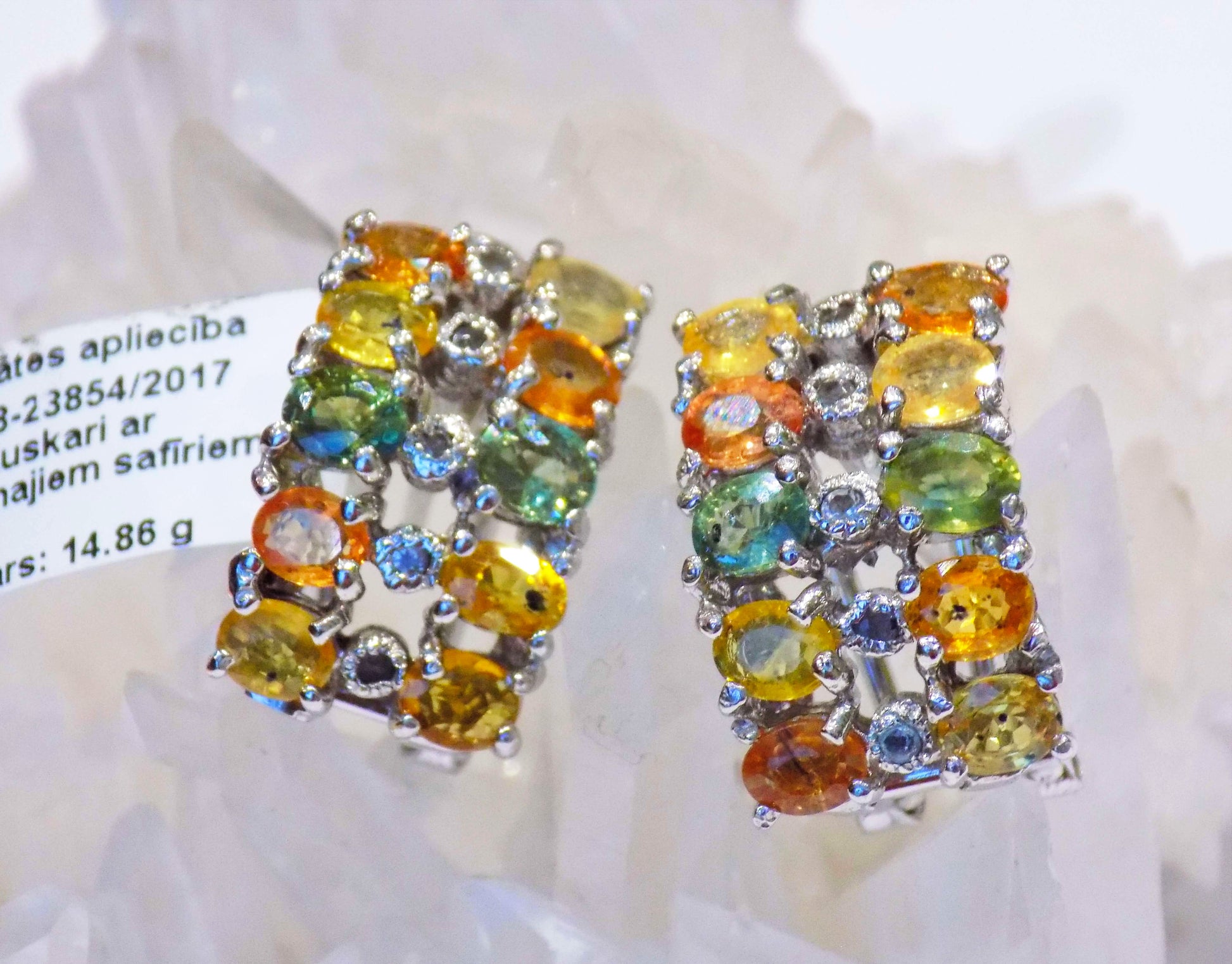 Sudraba auskari ar daudzkrāsainiem safīriem un baltiem cirkoniem