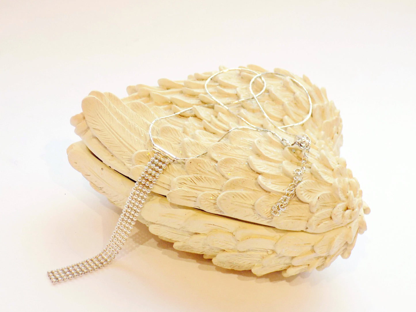 Moderna, moderna sudraba kaklarota ar dažāda garuma ķēdīti.