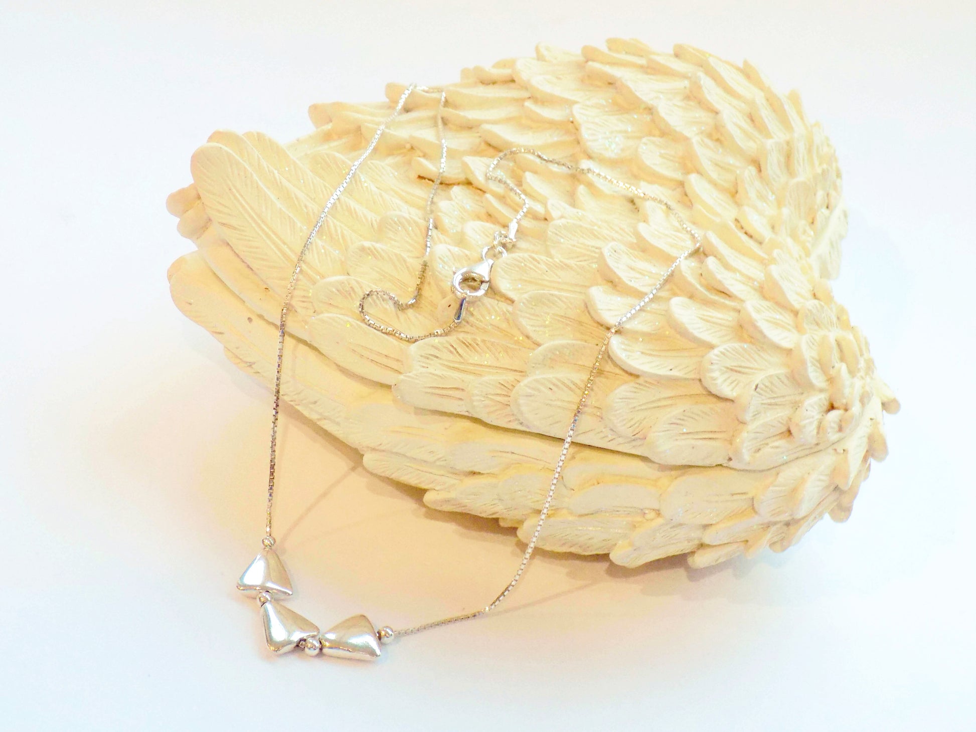 Moderna, moderna sudraba kaklarota. Tas pārsteidzoši atspoguļo gaismu, piešķirot jūsu izskatam papildu spīdumu.