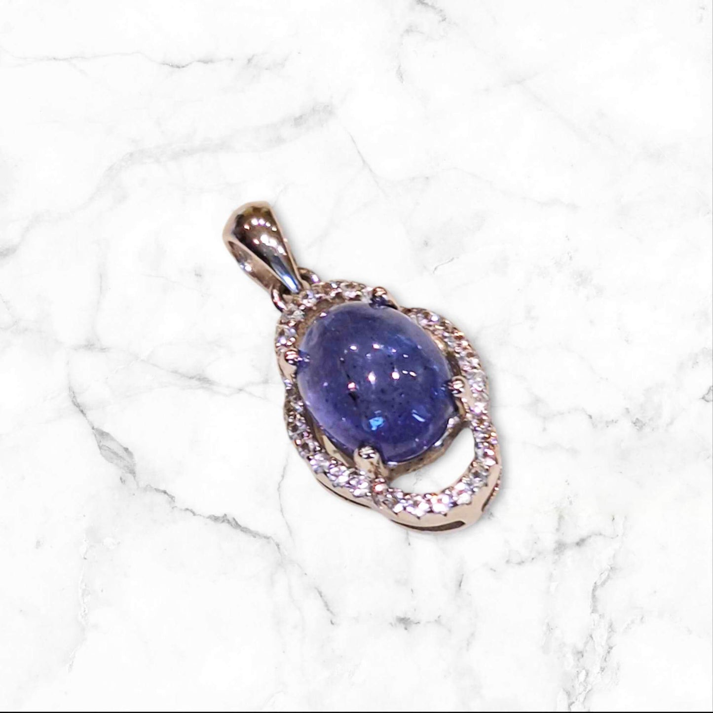 Izrotājiet sevi ar mūsu sudraba kulonu, kam ir burvīgs kabošona ovāls tanzanīts un mirdzoši slīpēti apaļi cirkoni. Pārklāts ar hipoalerģisku baltu rodiju, šis kulons piedāvā elegantu un ērtu valkāšanu. Šis dabīgā dārgakmeņu kulons ir lieliski piemērots jebkuram gadījumam, un tas liecina par mūžīgu eleganci un mūsdienīgu izsmalcinātību.