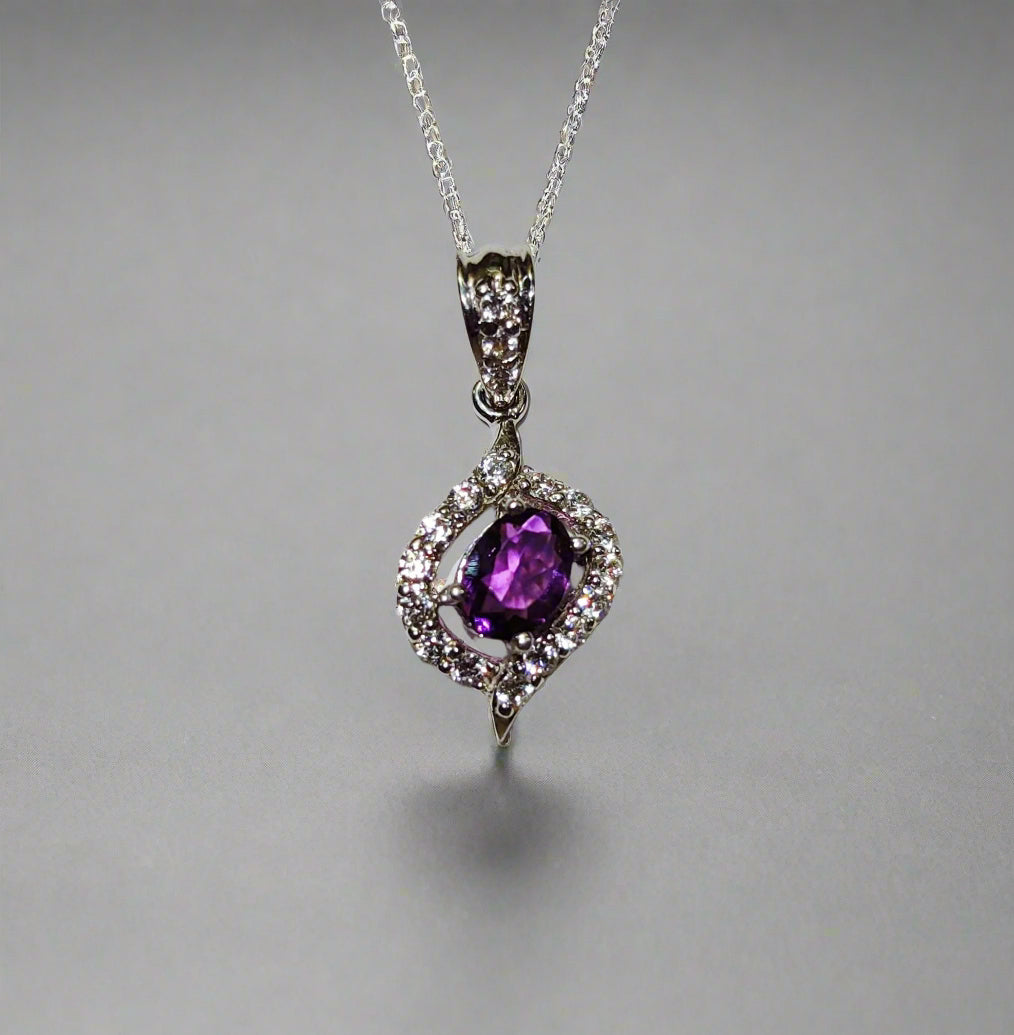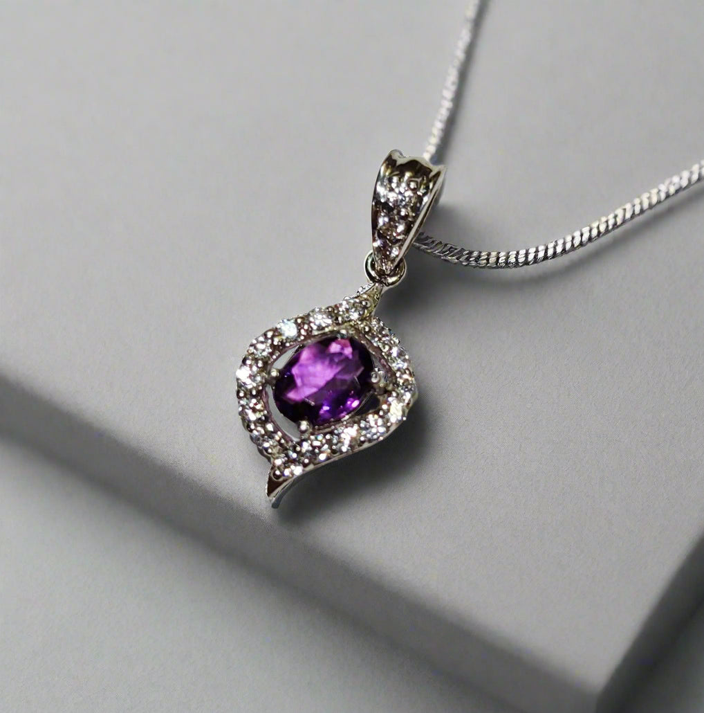 Dabīgie dārgakmeņi: Ametists 1 gab. (0,5 cm x 0,7 cm) un cirkoni 18 gab. (0,2 x 0,2 cm)