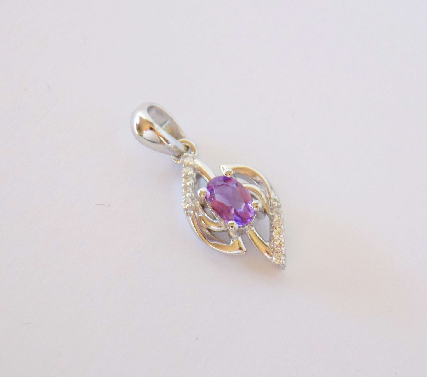 Dabīgie dārgakmeņi: Ametists 1 gab. (0,4 cm x 0,6 cm) un cirkoni 10 gab.