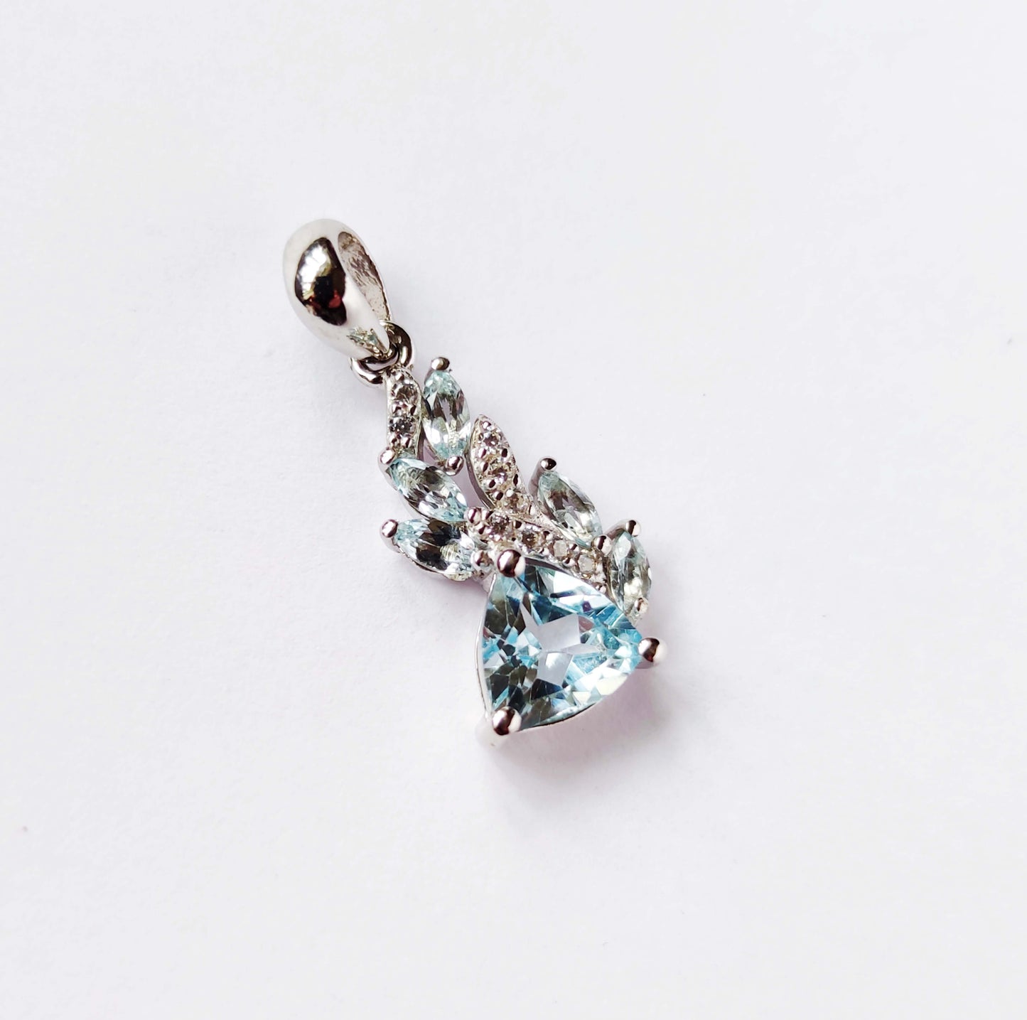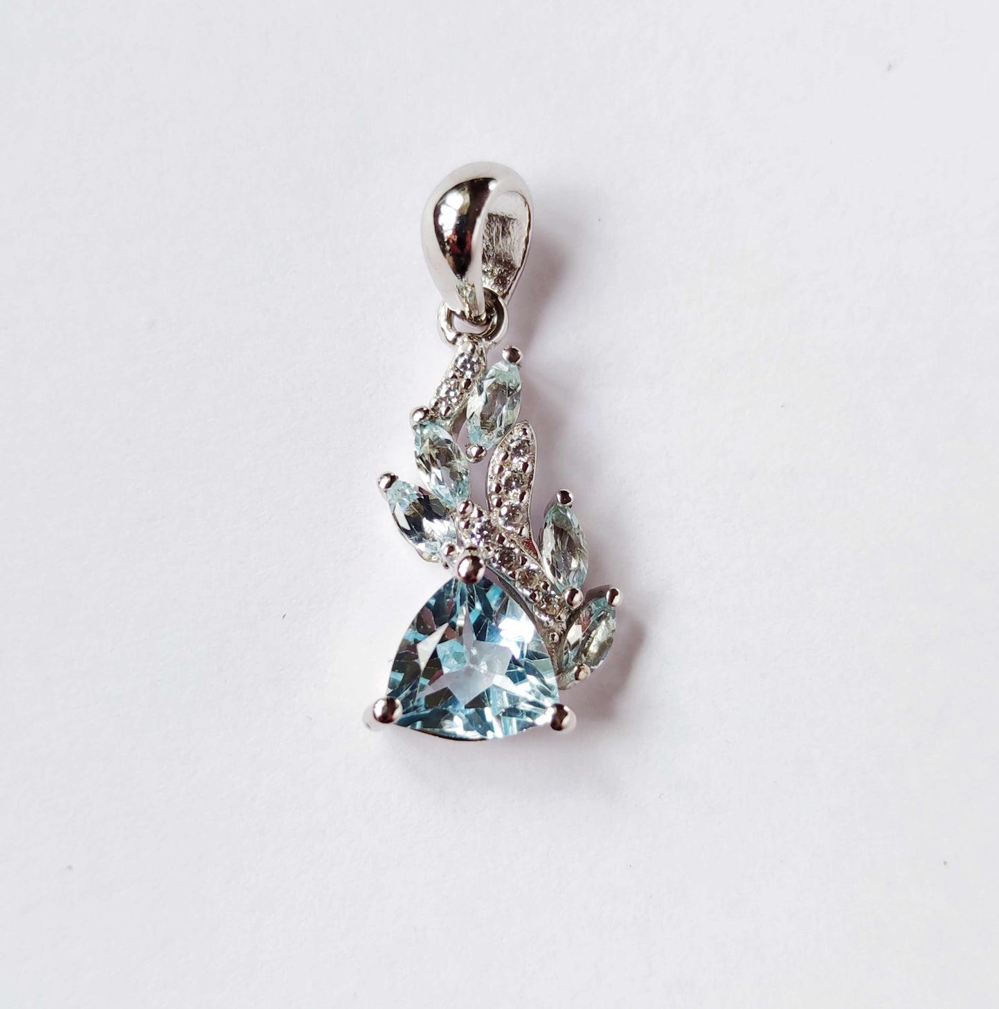 Sudraba kulons ar zilu topāzu un cirkoniem