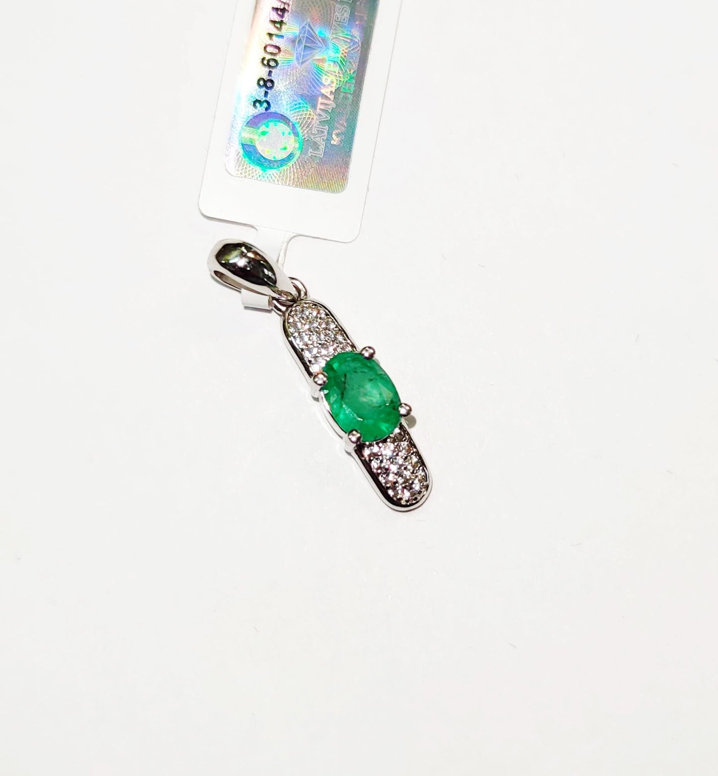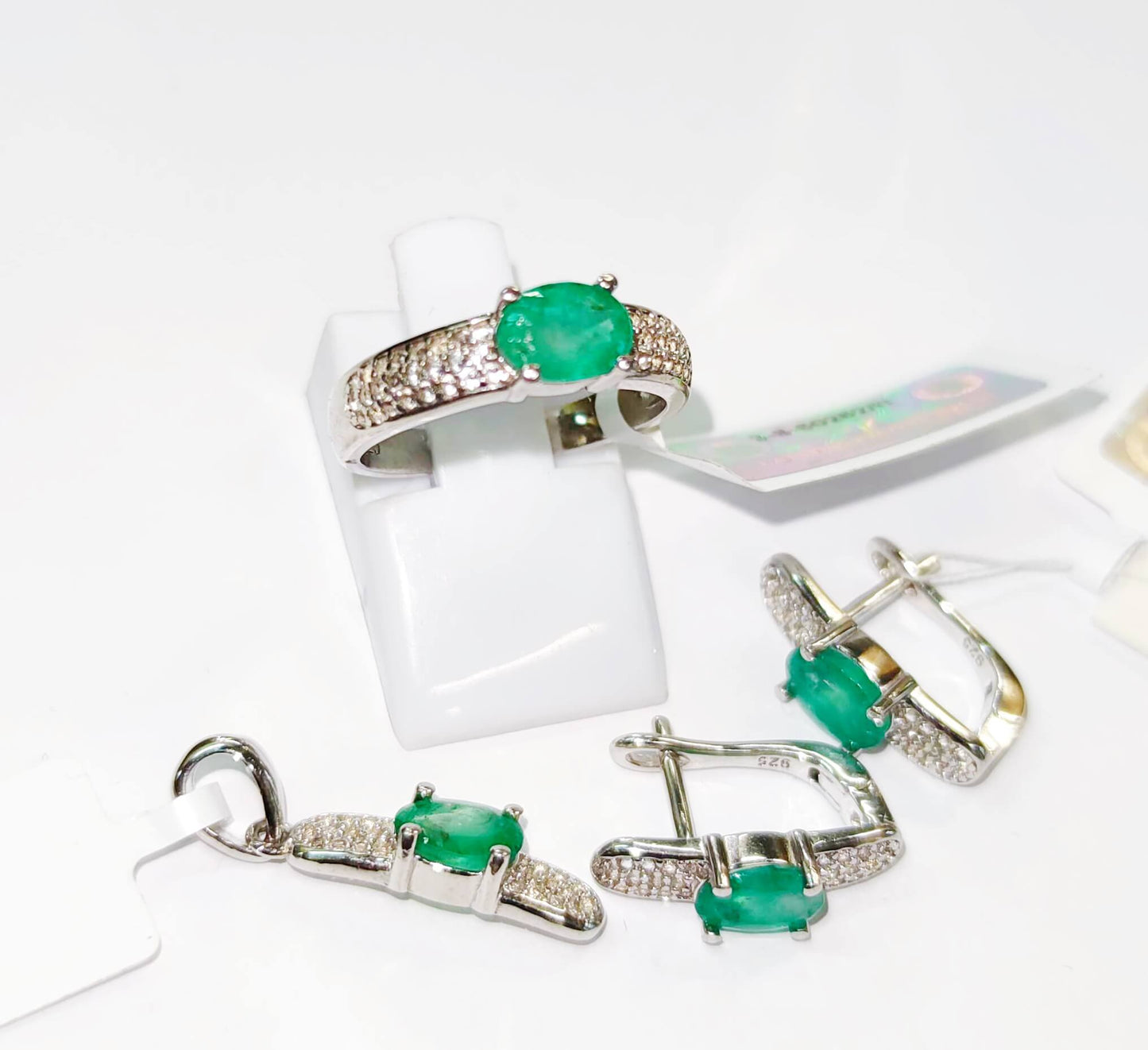 Dabīgie dārgakmeņi: Smaragds 0,85ct - 1 gab. (0,48 cm x 0,68 cm) un cirkoni 24 gab. (0,1 cm x 0,1 cm).