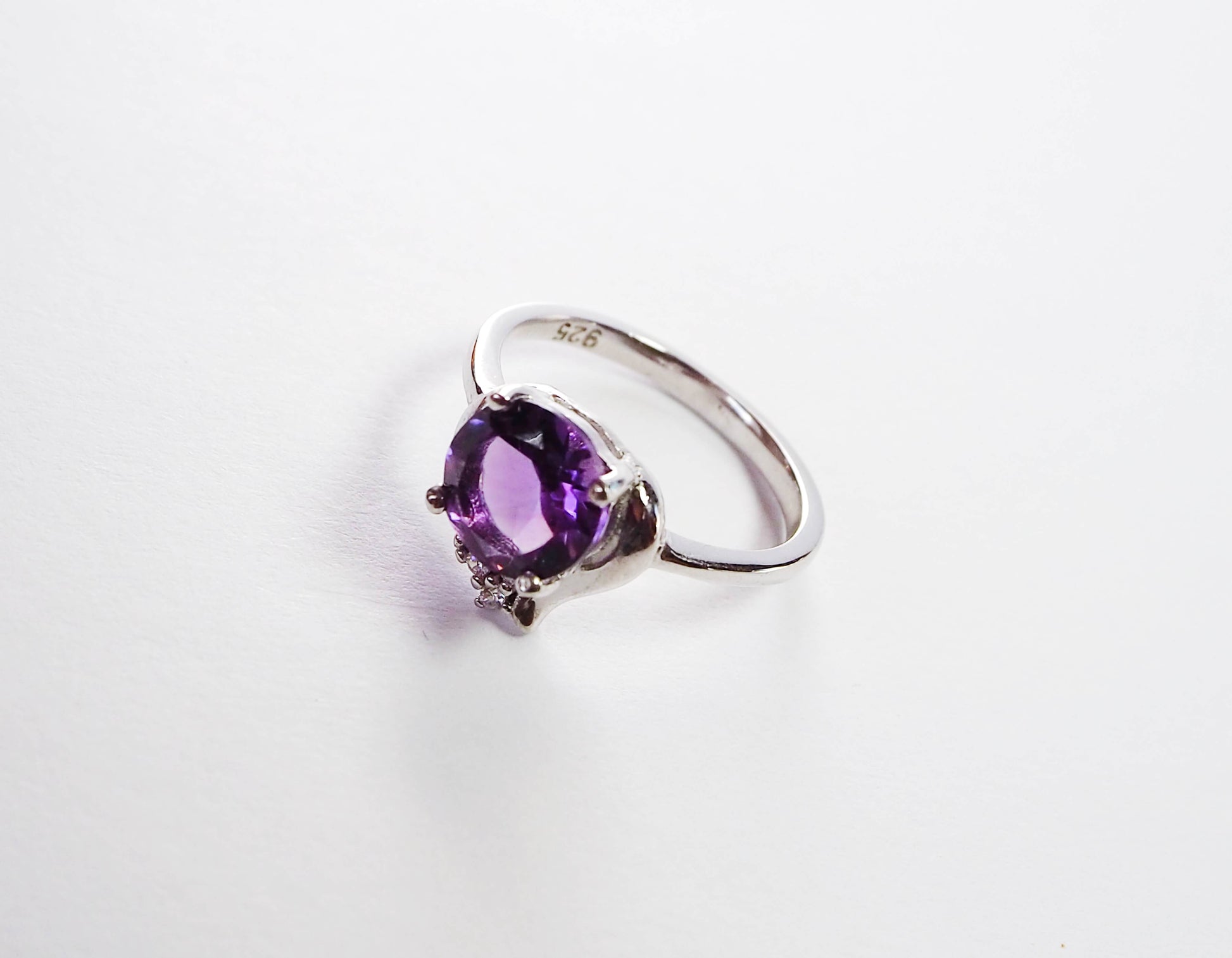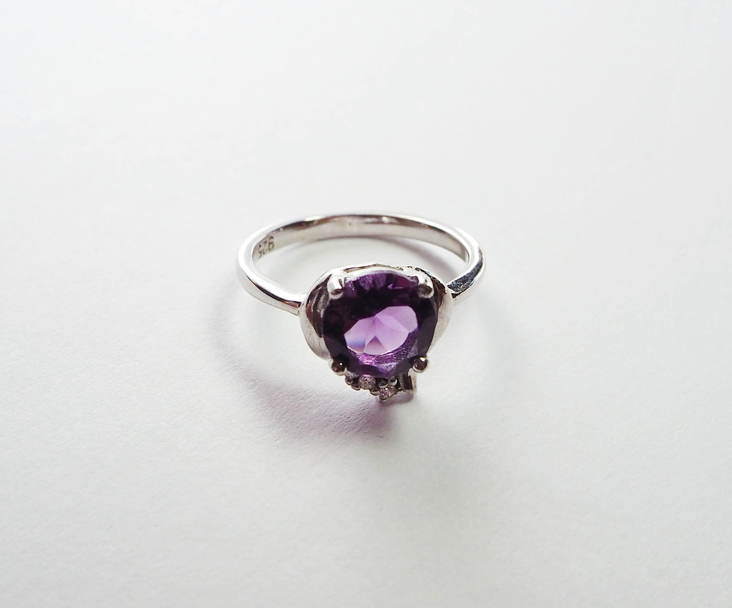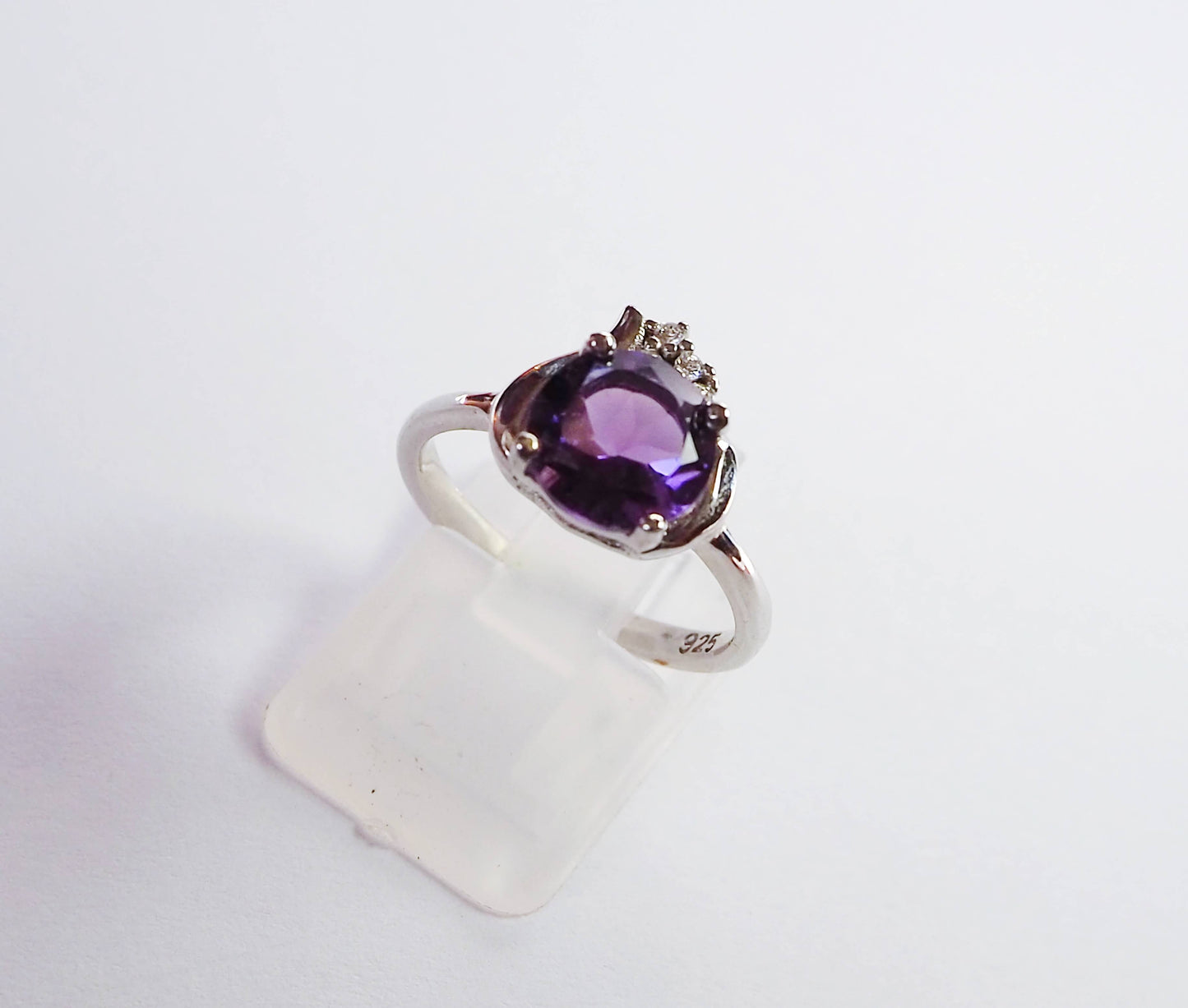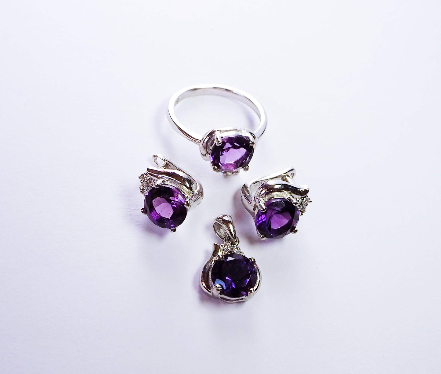 Dabīgie dārgakmeņi: Ametists 1 gab. (0,8 cm x 0,8 cm) un cirkoni 4 gab. (0,15 cm x 0,15 cm).