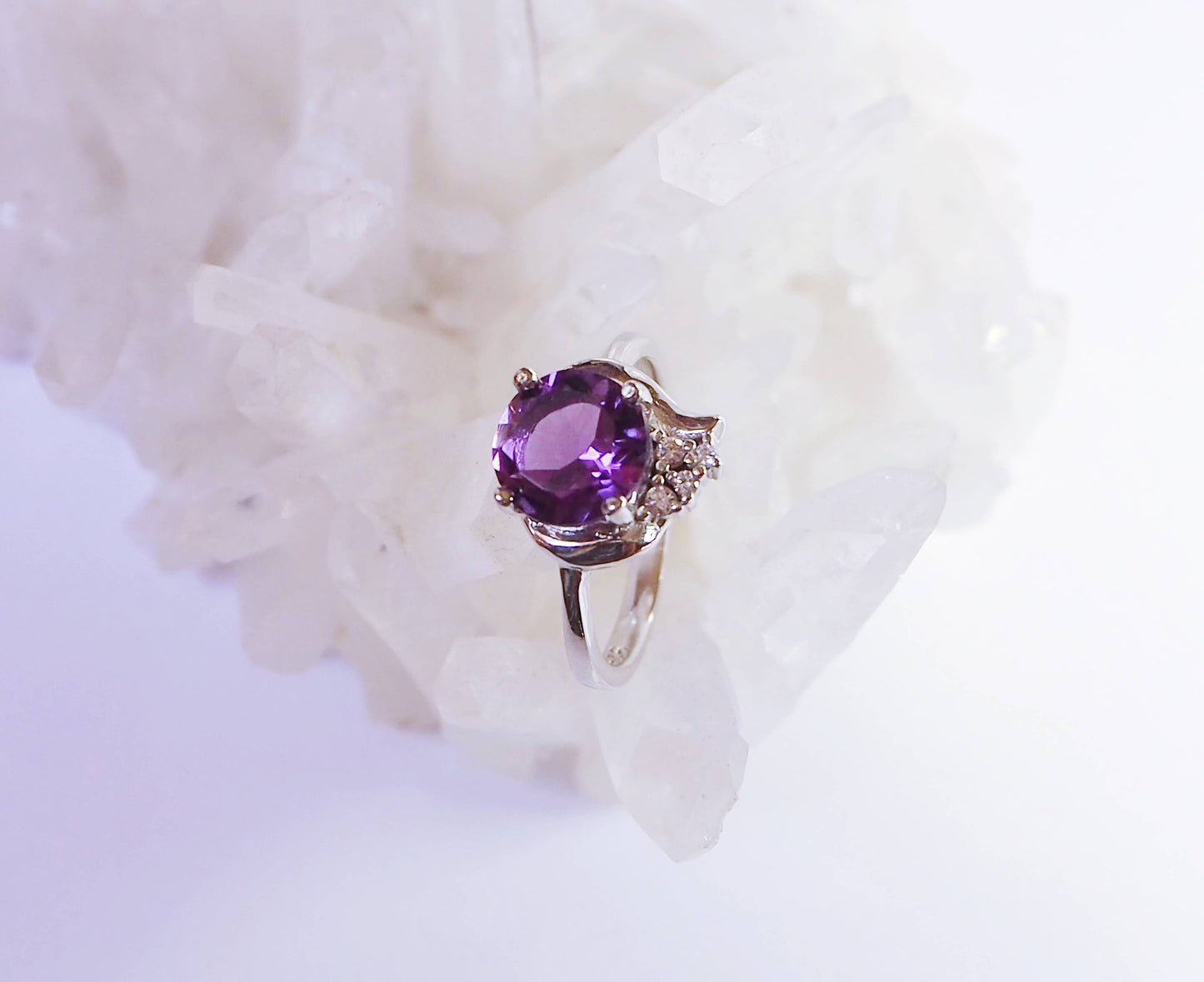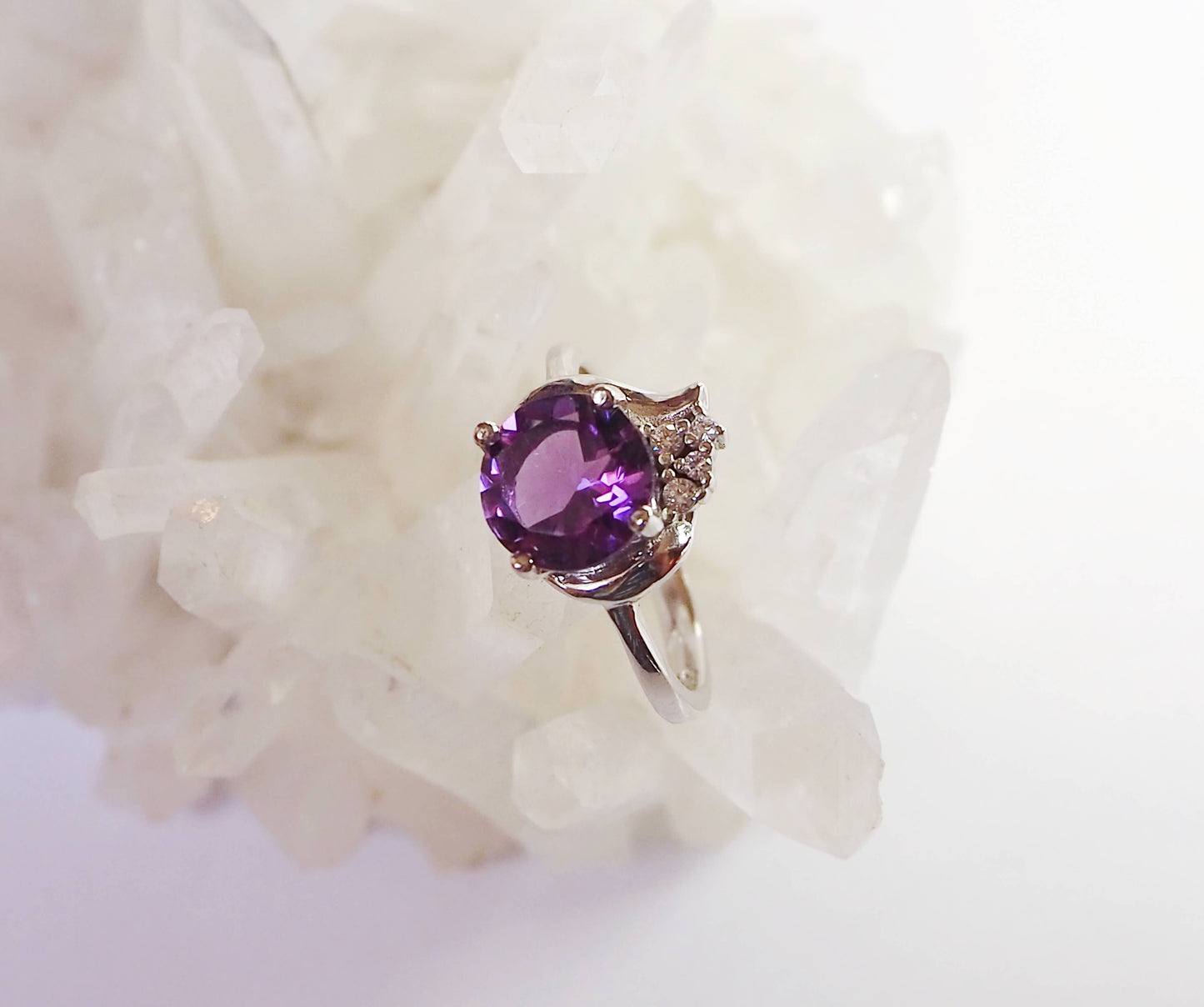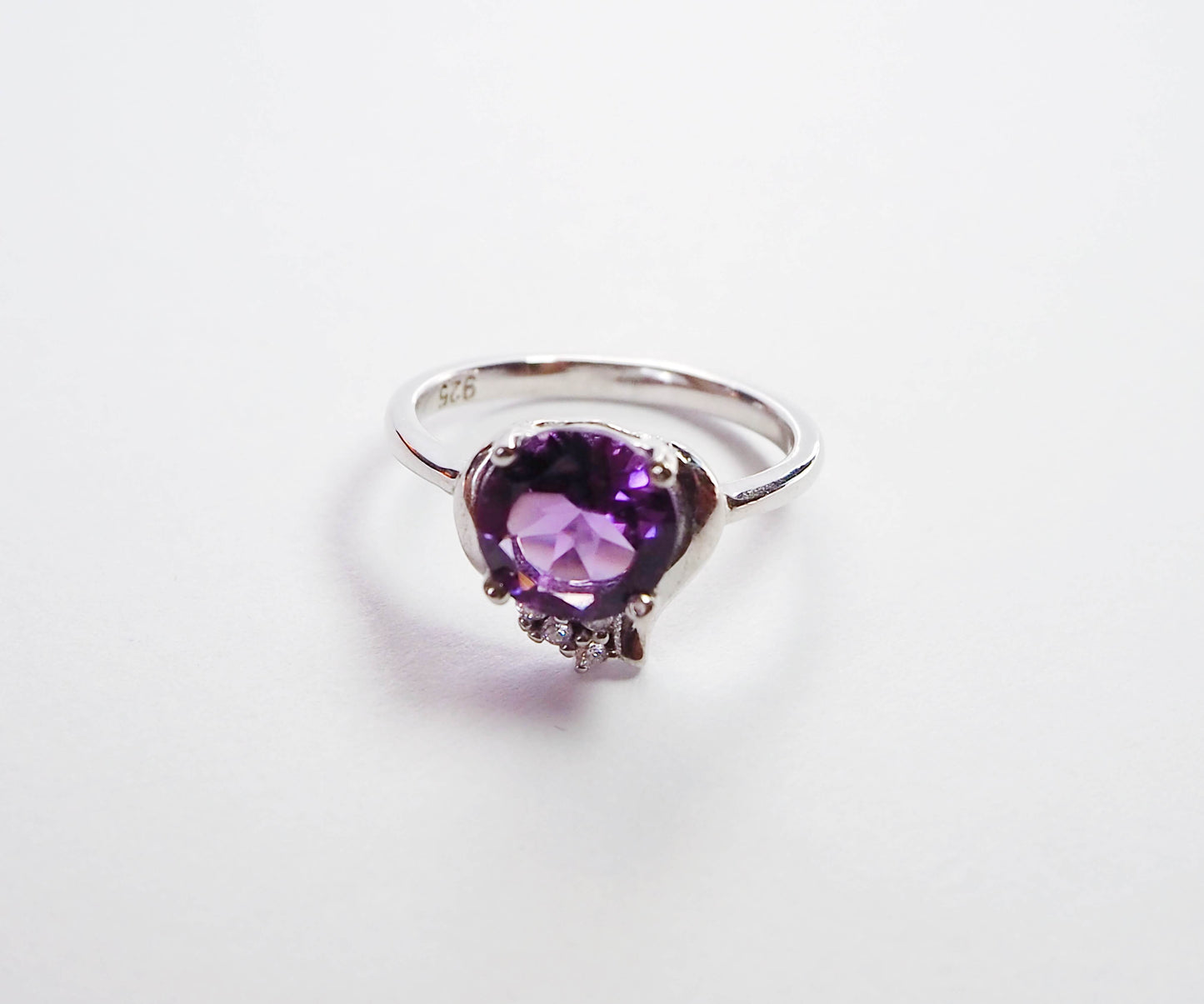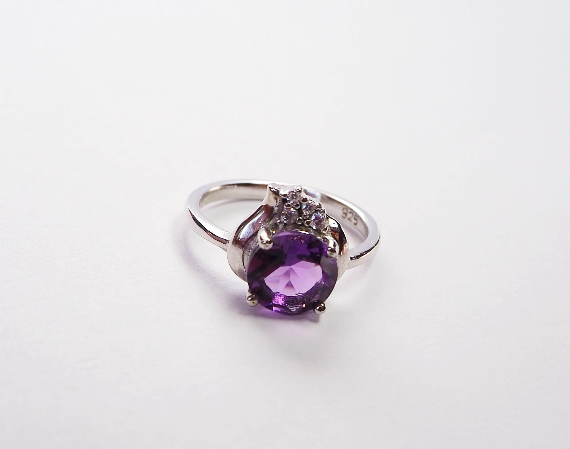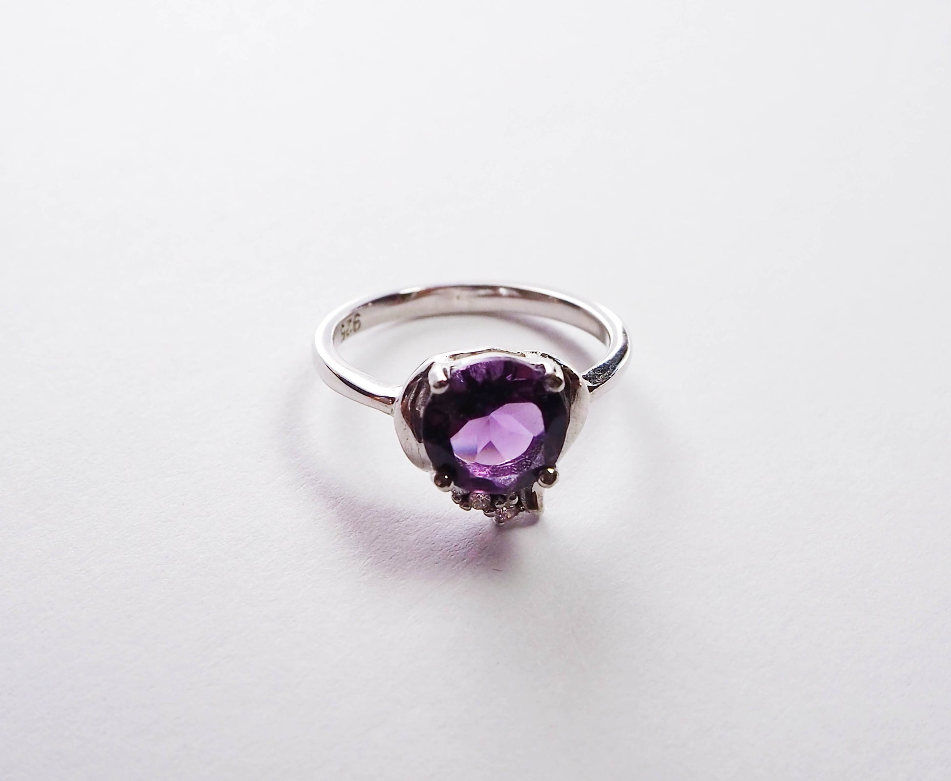 Dabīgie dārgakmeņi: Ametists 1 gab. (0,8 cm x 0,8 cm) un cirkoni 4 gab. (0,15 cm x 0,15 cm).