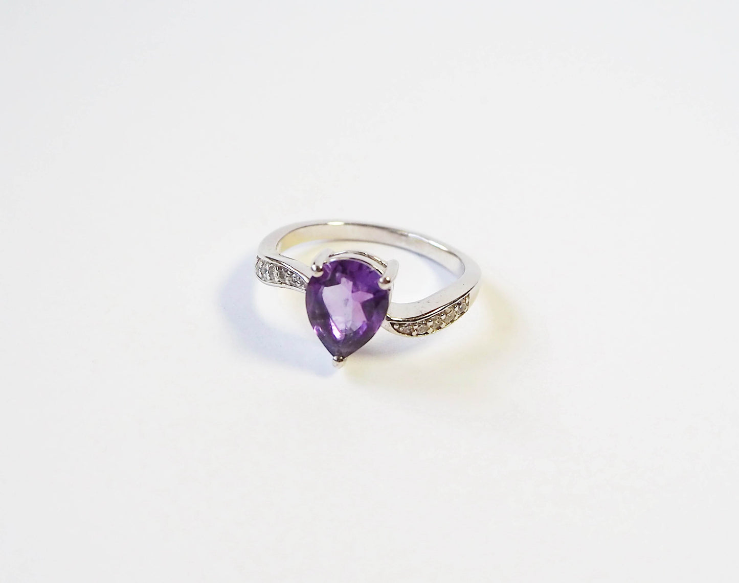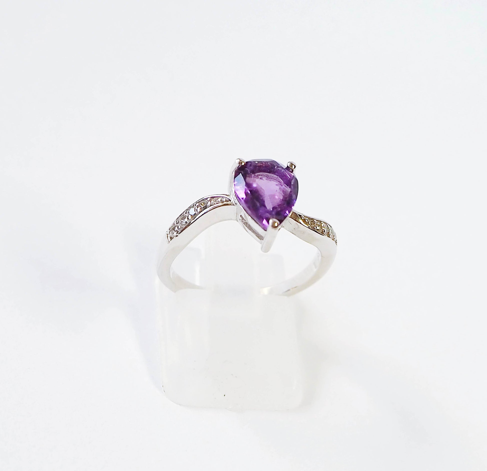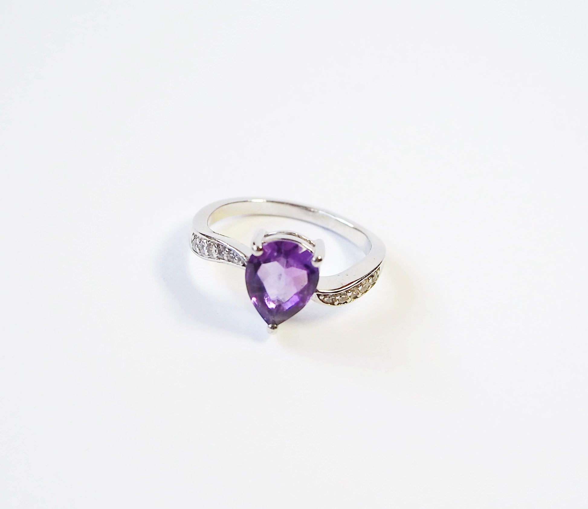 Dabīgie dārgakmeņi: Ametists 1 gab. (0,7 cm x 0,9 cm) un cirkoni 10 gab. (0,1 cm x 0,1 cm - 0,15 cm x 0,15 cm).
