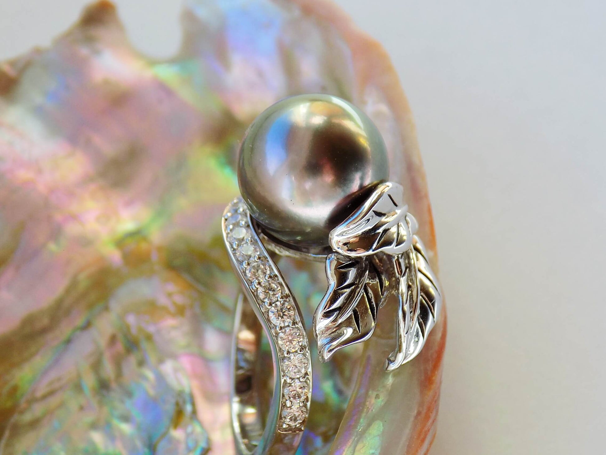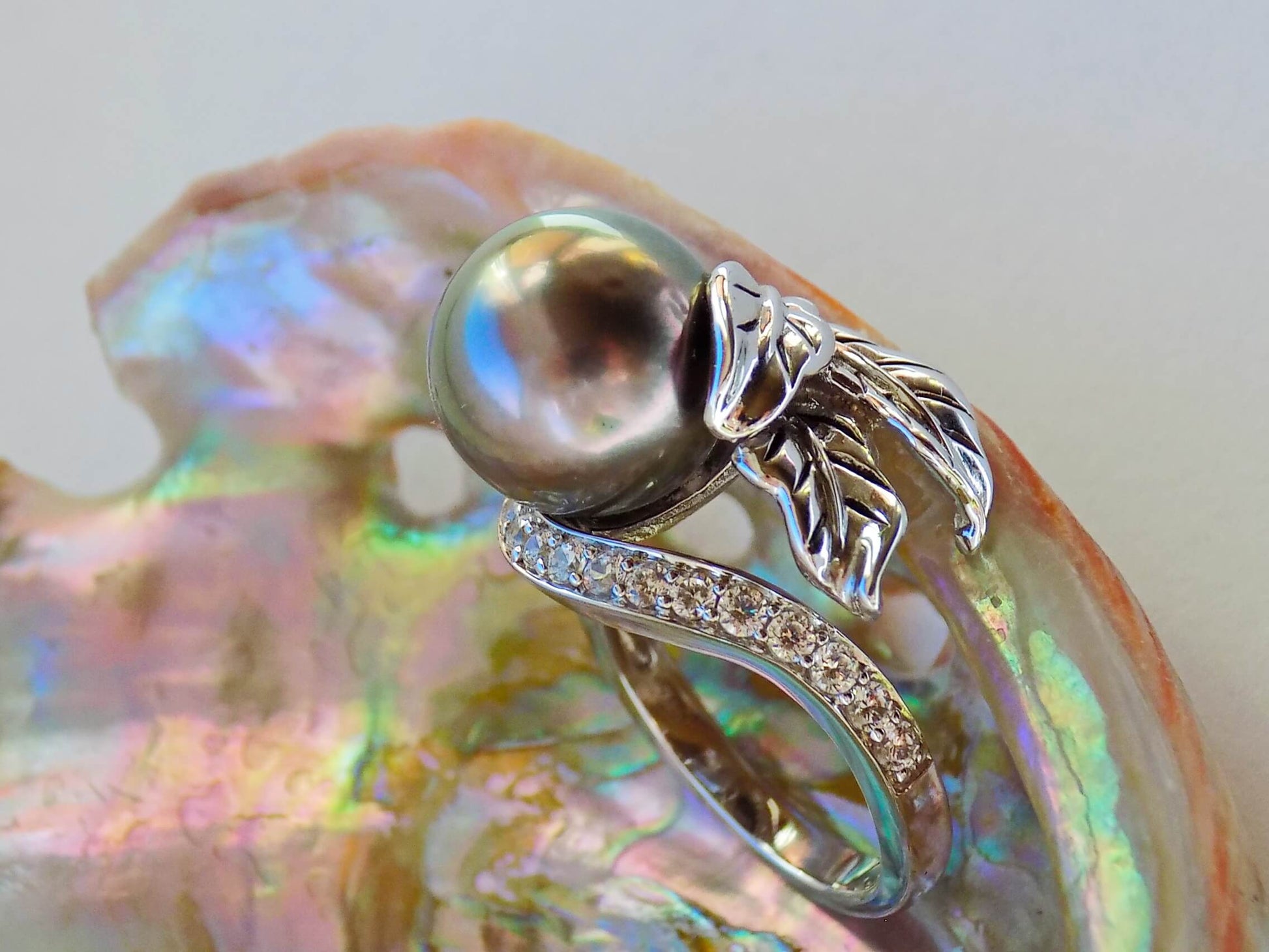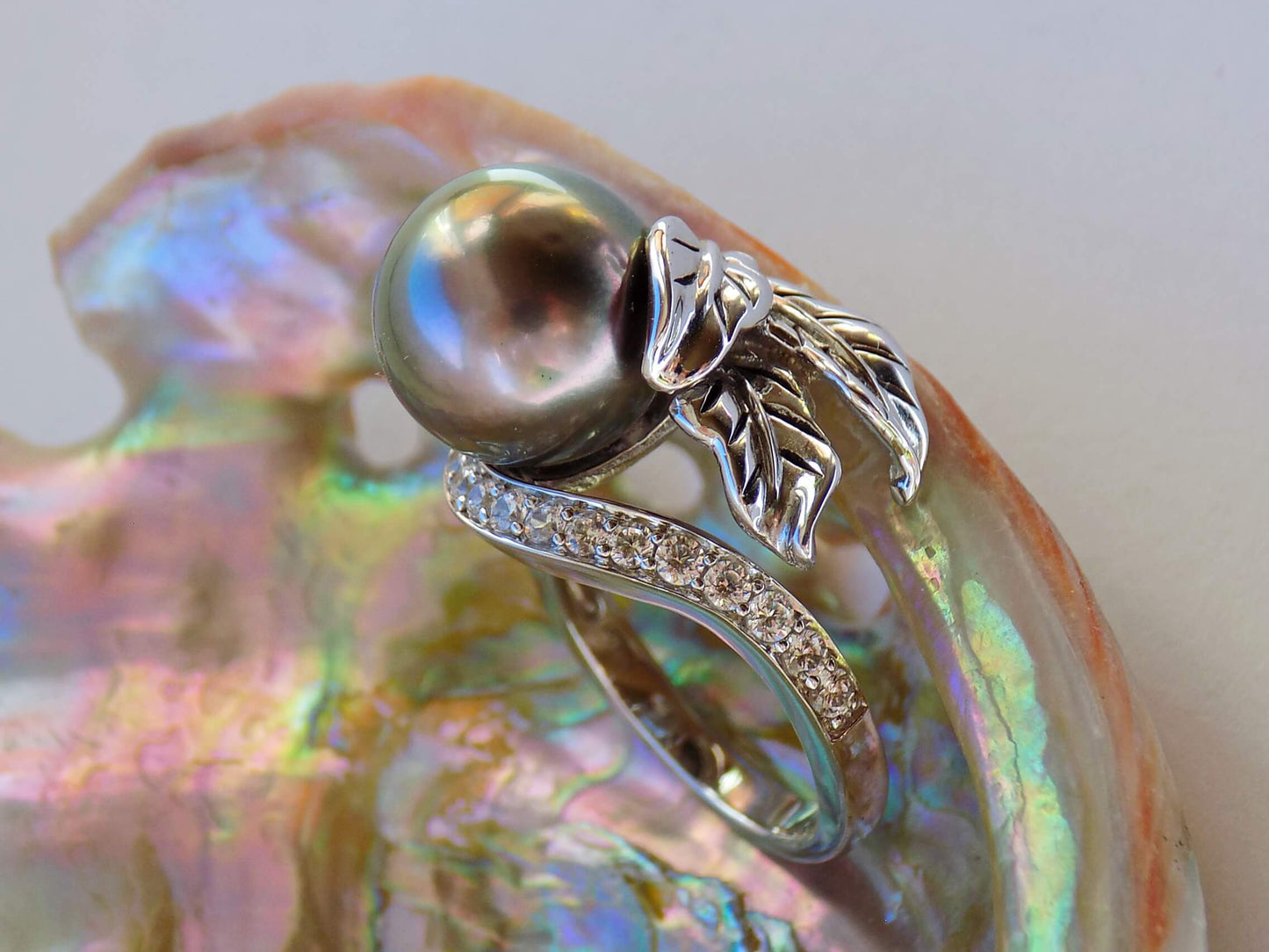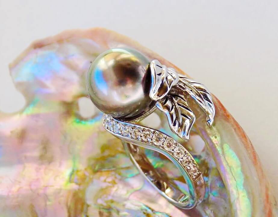 Sudraba gredzens ar Melnās jūras pērli un cirkoniem