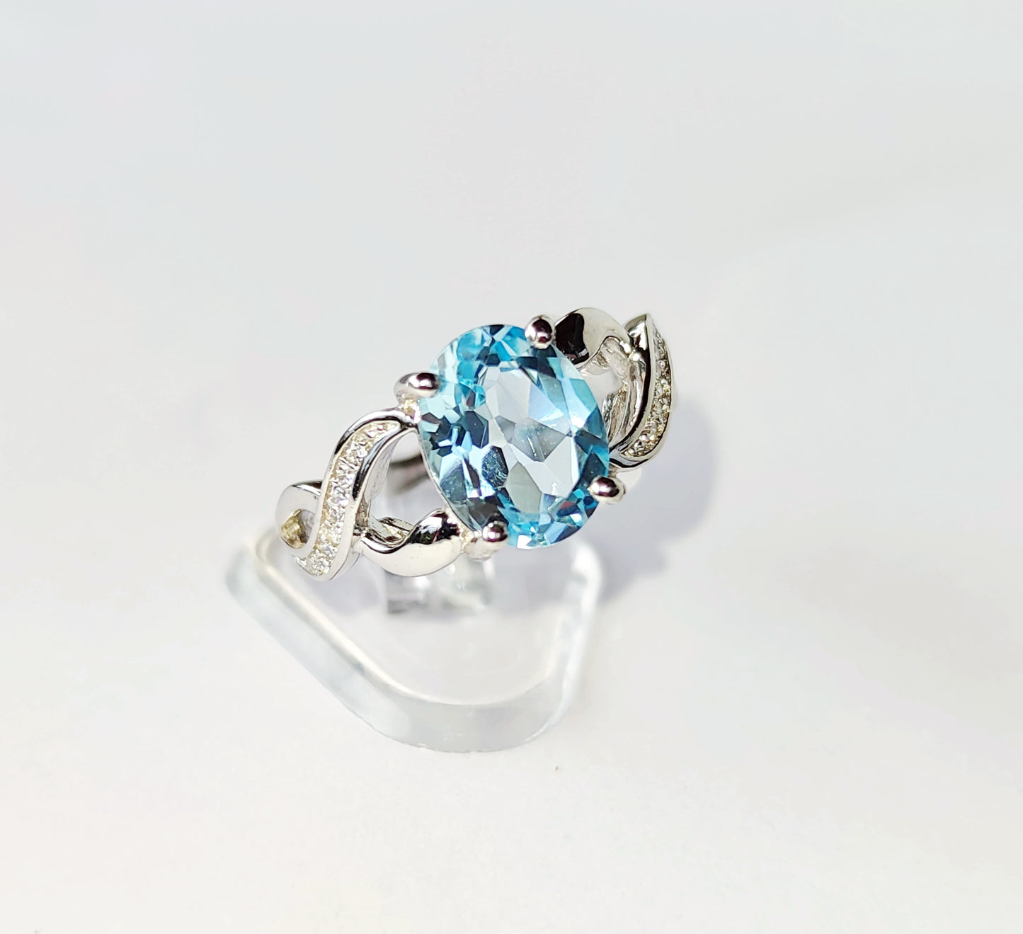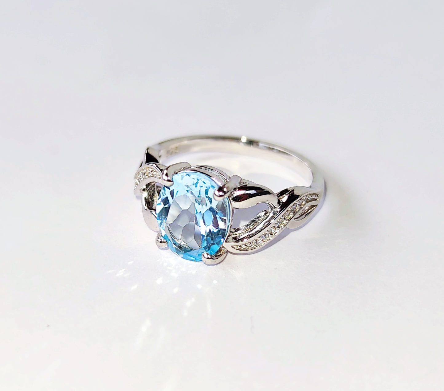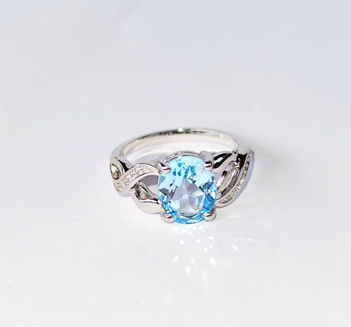 Sudraba gredzens ar zilu topāzu un cirkoniem