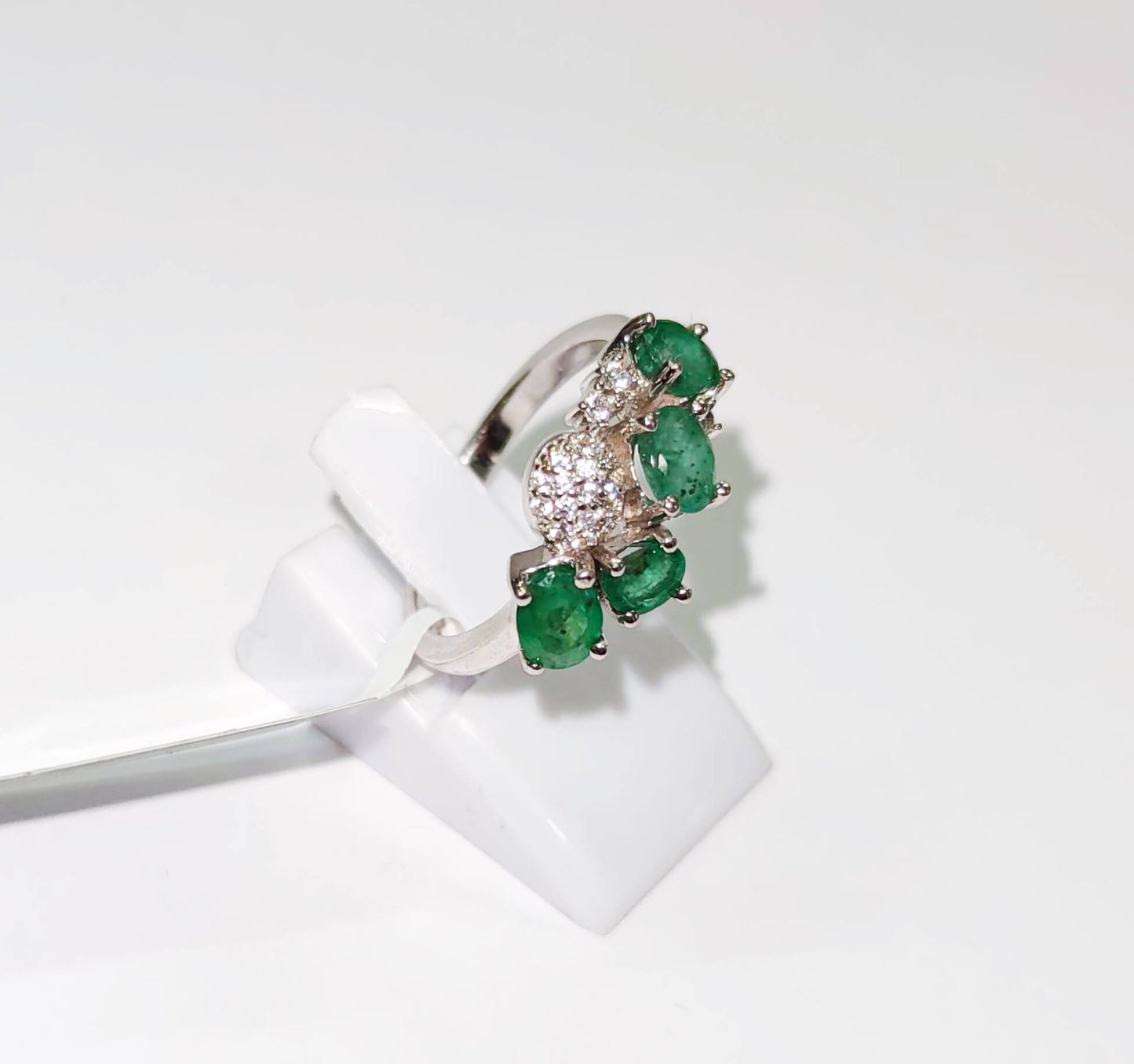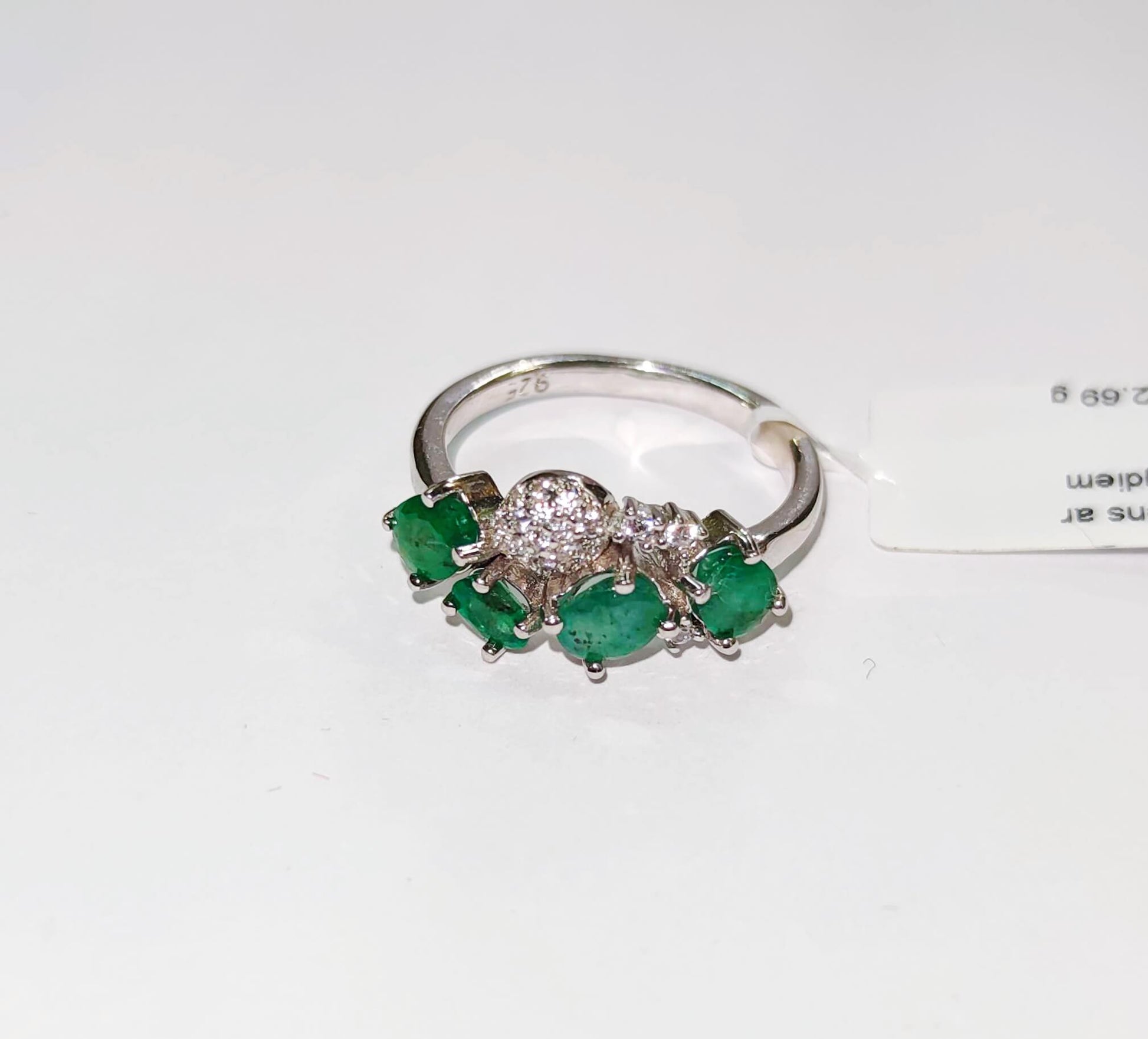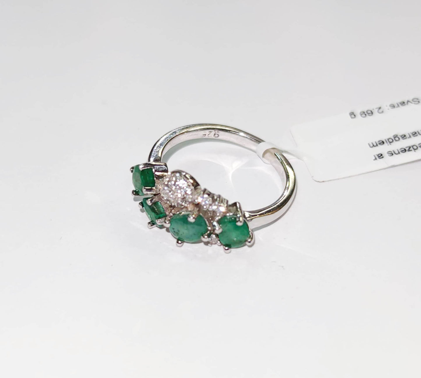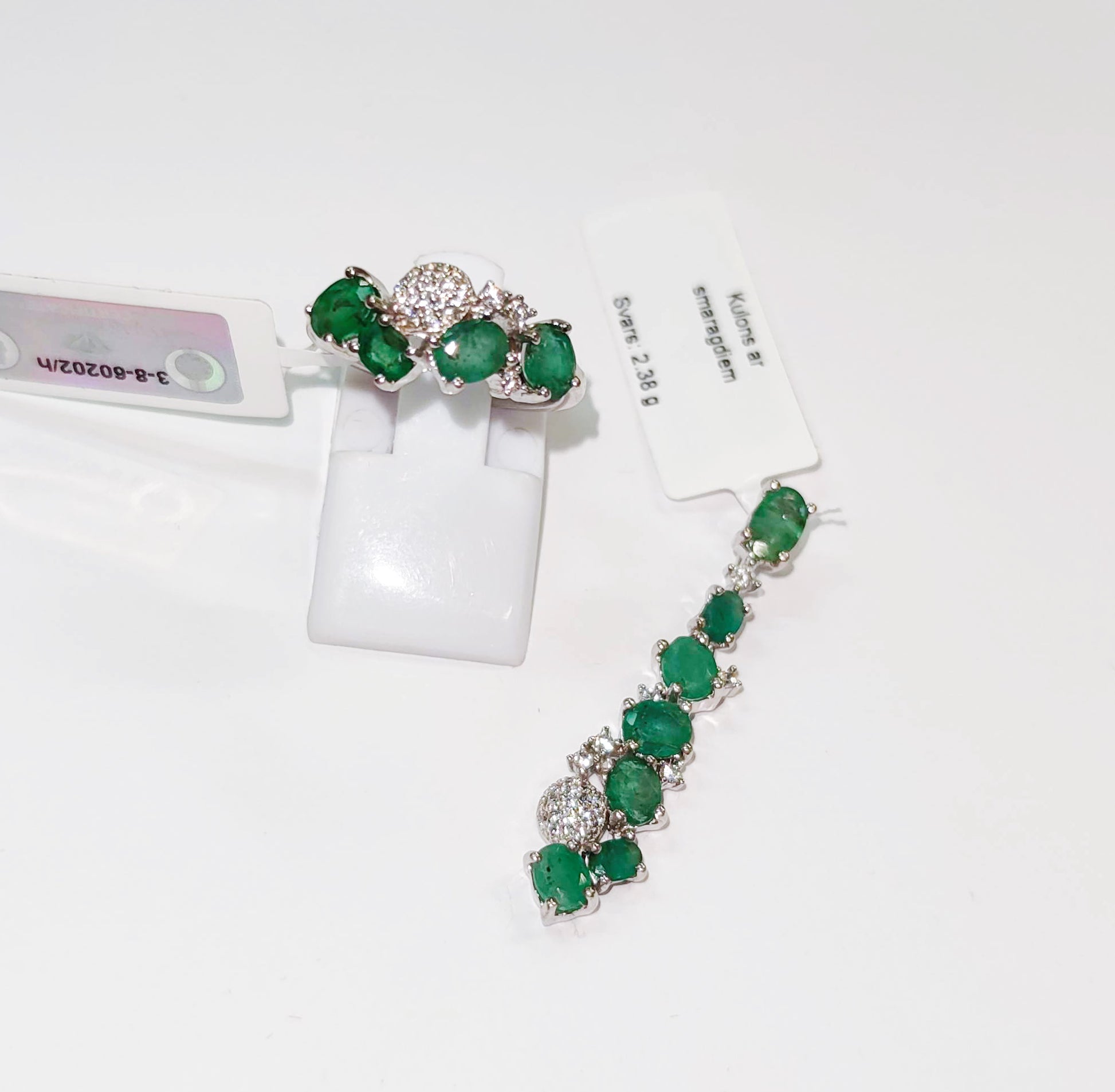 Dabīgie dārgakmeņi: Smaragdi 0,92ct - 3 gab. (0,4 cm x 0,5 cm), 1 gab. (0,3 cm x 0,4 cm) un cirkoni 3 gab. (0,15 cm x 0,15 cm), 17 gab. (0,1 cm x 0,1 cm).