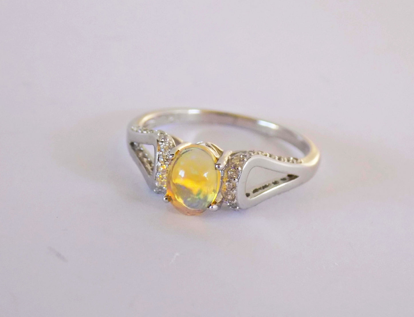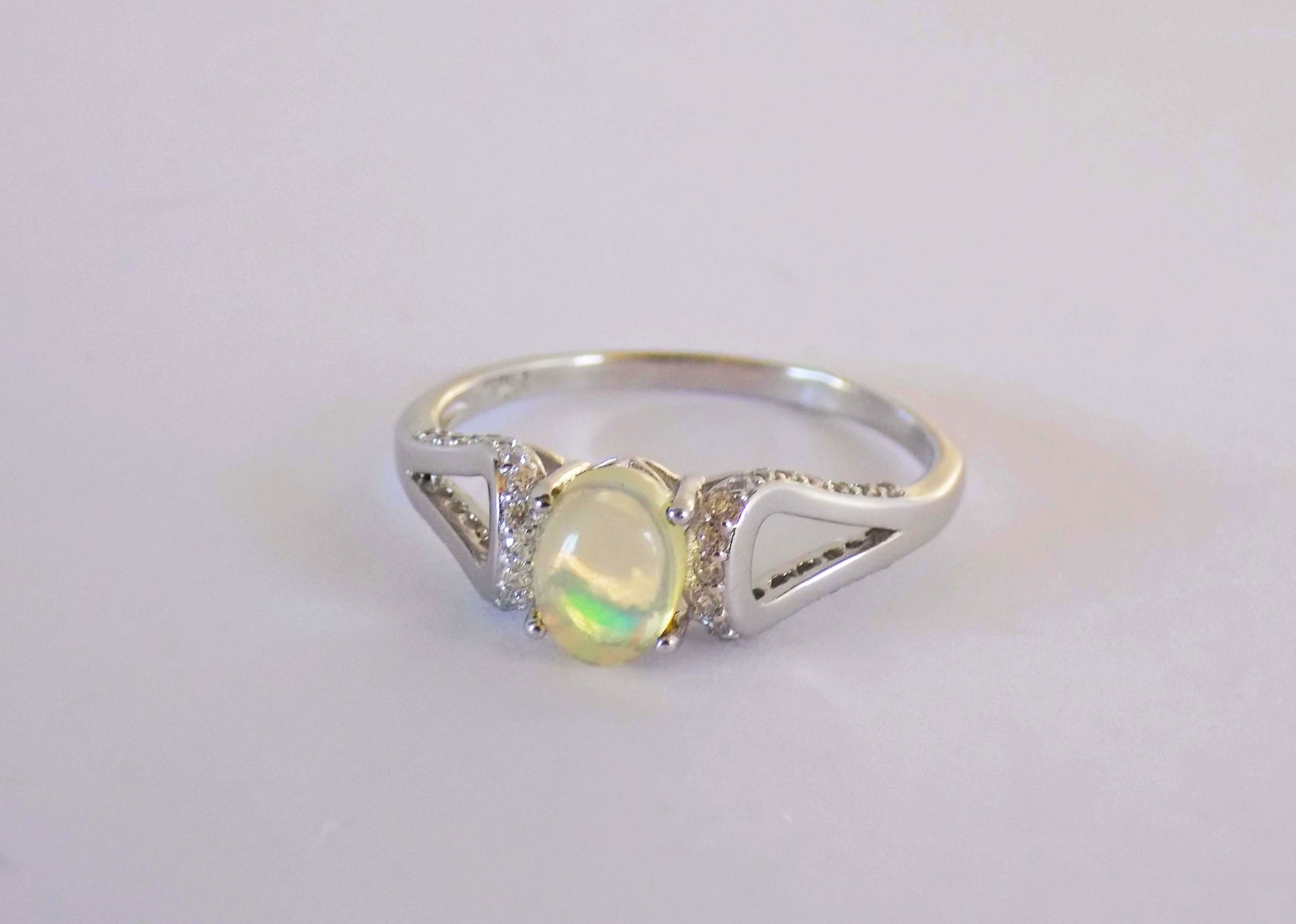 Sudraba gredzens ar Etiopijas opālu un cirkoniem